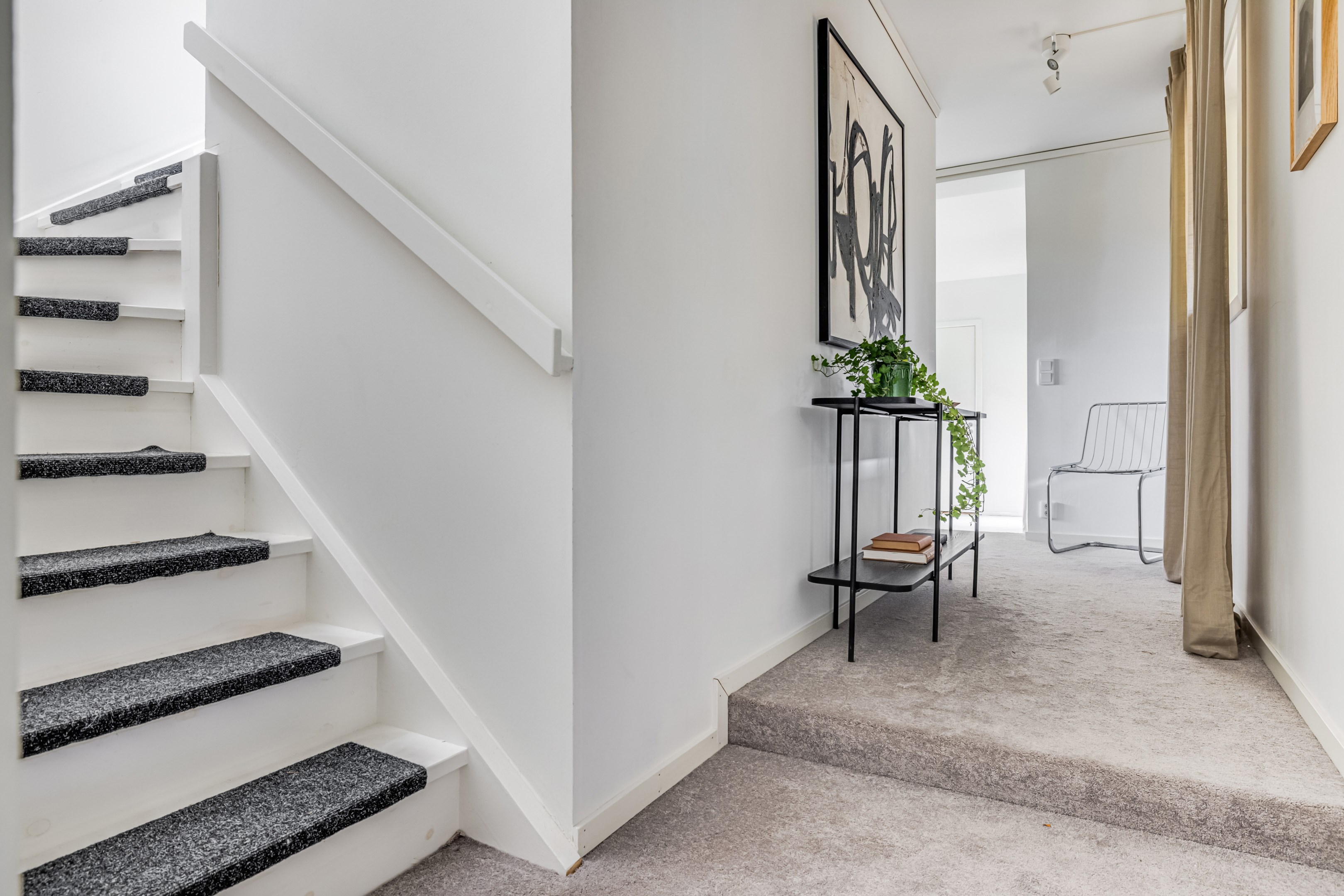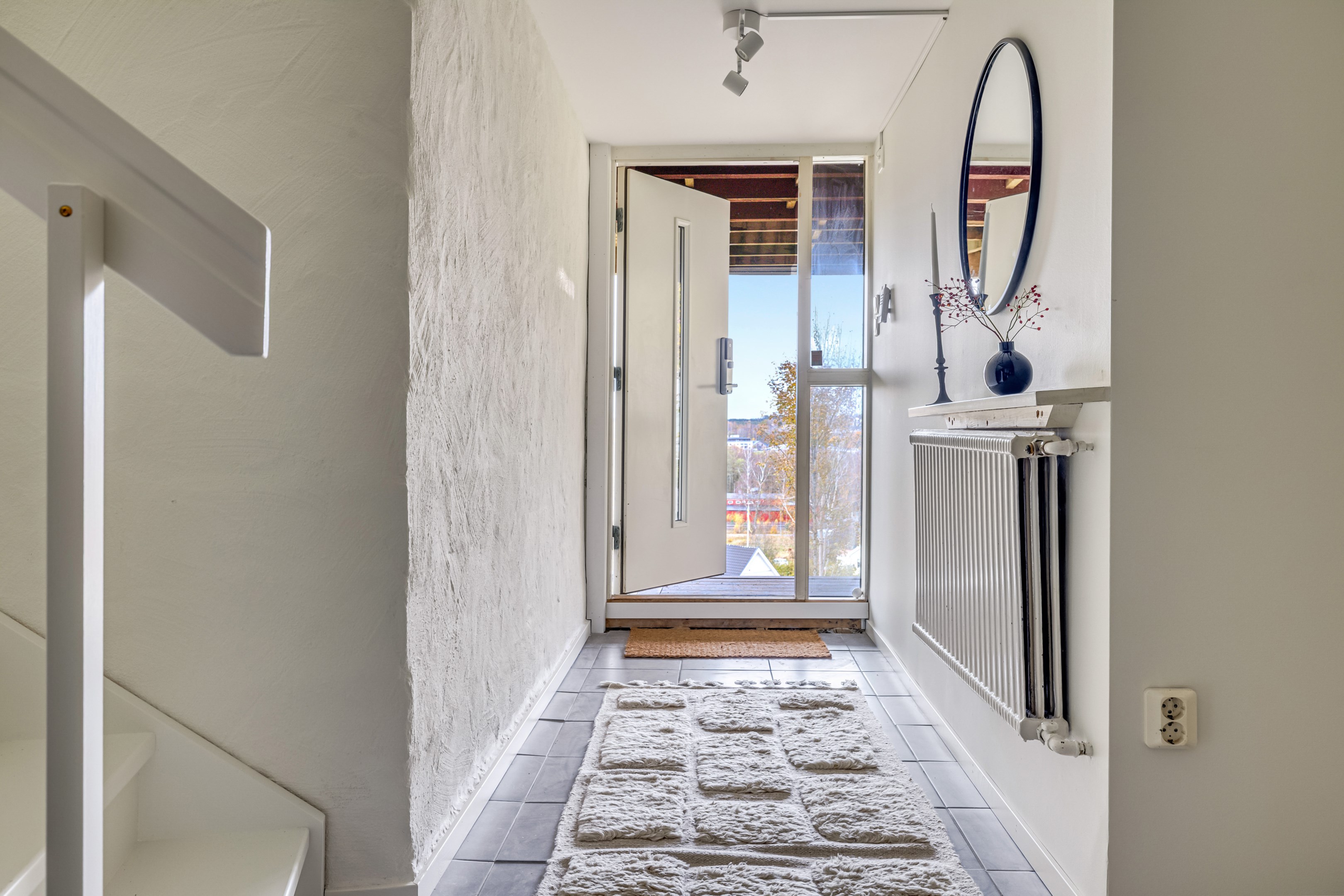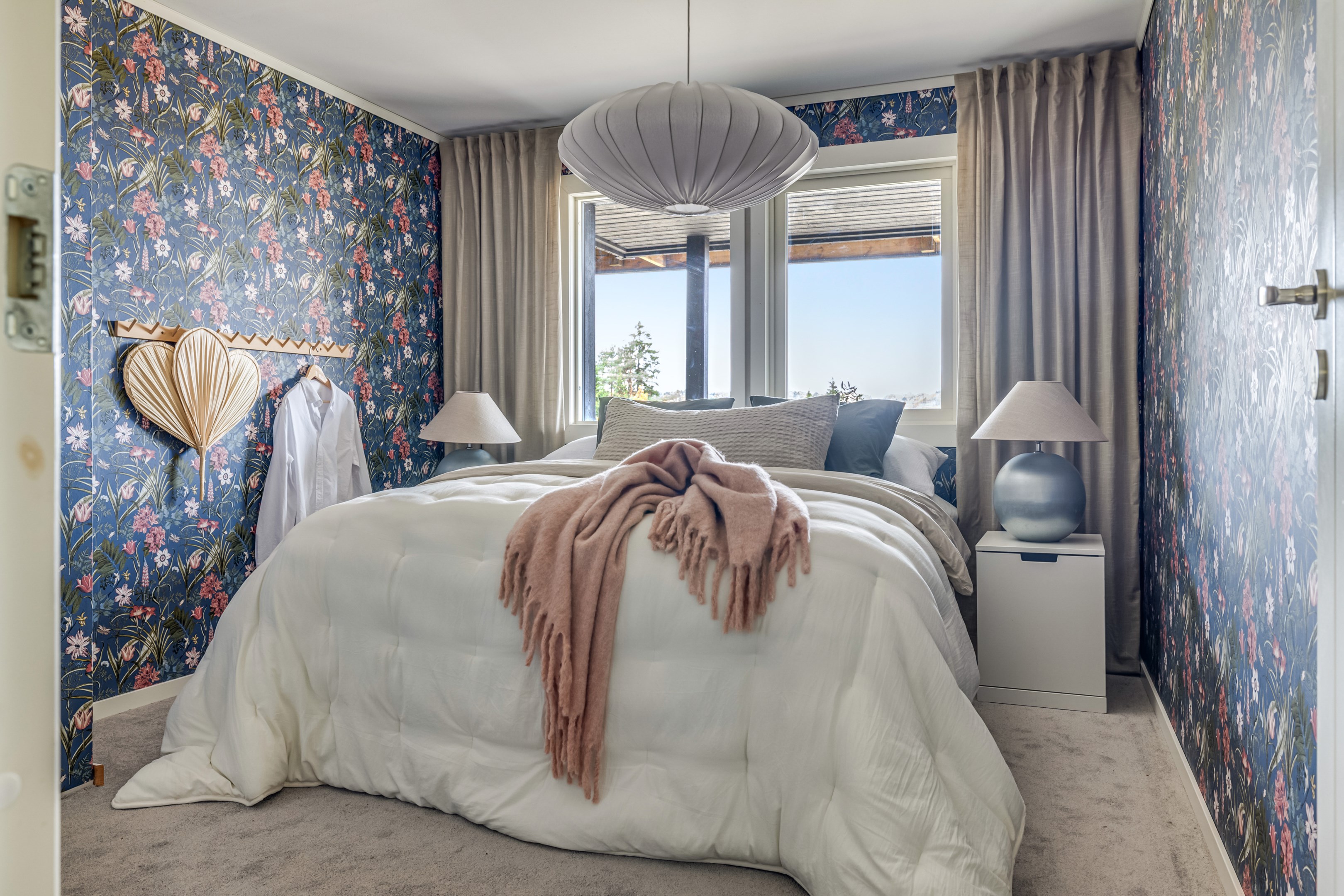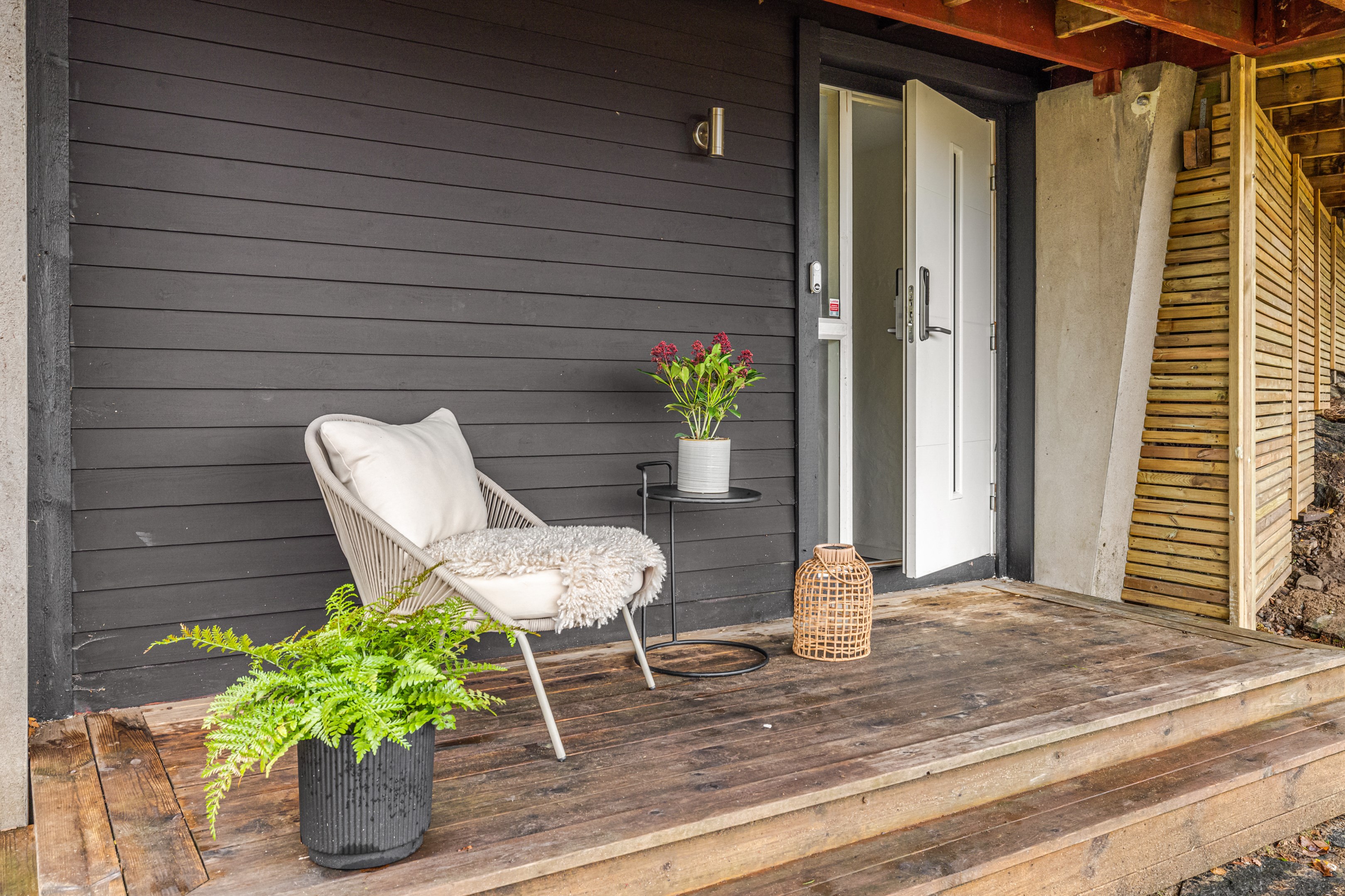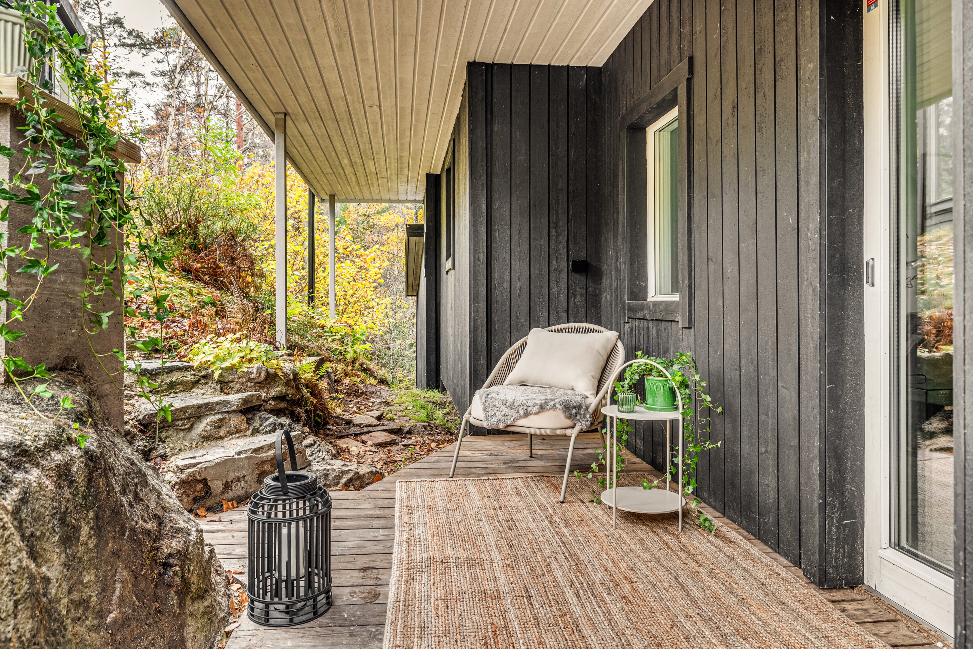 ENTRÉPLAN Via entrén under tak leds du in i denna mäktiga villa. På entréplanet möts du av en hall med yta för att hänga av dig ytterkläder och skor längs med väggen. Betongväggarna är putsade i vitt och på golvet ligger en grå klinker. Längre in i hallen finns god yta för garderober. Från hallen når du den helkaklade ytan som agerat tvättstuga och badrum. Utrymmet är äldre men fullt funktionellt. Här finns duschmöjligheter via duschkabin, wc-stol och handfat samt tvättmaskin och torktumlare från 2021. Utrymmet har vattenburen golvvärme och via ett fönster tittar dagsljuset in. Via dörren intill når du ett grovinrett utrymme, här står innerdelen till husets värmekälla, IVT Optima 800. MELLAN PLAN Från entréplanet har en trappa nyligen installerats som leder dig upp till nästa plan. Här möts du av stora hemtrevliga sällskapsytor, generösa fönsterpartier och ett rejält kök med en social barbänk som delar av ytorna på ett trivsamt sätt. Luftvärmepumpen från 2015 är sparsamt använd då den nyttjats som ett värmekomplement under årets kallare dagar och för AC under årets varmare dagar. På golven ligger det ett vitmålat träplank och väggarna är genomgående målade i vitt. Köket har gott om skåp och mycket bra arbetsytor. Ovan vita bänkskivor i laminat har du stänkskydd i vitt kakel. Vitvarorna fördelar sig om en kombinerad kyl och frys från 2020, äldre spis och ugn, fläktkåpa från 2015 och diskmaskin från 2017. Köksrummets generösa yta ger dig många olika möbleringsalternativ. Här är lätt att duka upp stort till familjära tillställningar. Braskaminen ger både värme och stämningsfaktor. Uterummet ligger smart placerat och är en skön plats för avkoppling och återhämtning. Uterummet som har höst isolerat glas från Willab Garden har det övre planet som tak och tjock frigolit under golvet så med en gasolkamin kan du snabbt värma upp utrymmet även på vintern. I vardagsrumsdelen får du plats med soffgrupp och tillhörande möblemang. En gästtoalett ligger i anslutning till rummet. Från vardagsrummet når du också en liten uteplats under tak åt söder. För dig som önskar större sällskapsytor på detta plan finns möjlighet att öppna upp delar av väggen in mot intilliggande sovrum. Ett par trappsteg upp kommer du till det största sovrummet på detta plan. Här finns bra förvaring bakom skjutdörrar. Väggarna pryds av en mönstrad tapet och på golvet ligger en grå heltäckningsmatta. Vidare in i huset kommer du till trappan som leder dig upp till det övre planet och två rum lämpar sig bra till sovrum, kontor eller liknande. Väggarna är målade i vitt och på golvet ligger en grå heltäckningsmatta. Det innersta sovrummet ligger ett par trappsteg ner. Ett hörnfönster släpper in rikligt med ljus. ÖVRE PLAN Du välkomnas upp till det övre planet som är ett imponerande utrymme med magisk utsikt. Det övre planet fördelar sig om tre generösa sovrum, ett stort badrum och ett njutningsfullt sällskapsrum som har utgång till en balkong som sträcker sig runt 2 sidor om huskroppen. Sällskapsrummet har stora fönsterpartier som skänker ett fint ljusflöde till rummet. Alla sovrummen har plats för garderober och rymmer det mesta möblemanget du önskar. Badrummet har kakel från Interkakel, handfat med kommod, duschhörna med infällbara dörrar och wc-stol. Hela övre plan är helt fribärande och har vattenburen golvvärme i alla rum förutom badrummet som har elgolvvärme för bästa komfort. Fast nätverkskabel är draget till alla rum och den finns även i taket för en Wifi AP. På golven i alla rum ligger en 3 stavsparkett i ask, Stockholm White. Alla väggar är målade i vitt.