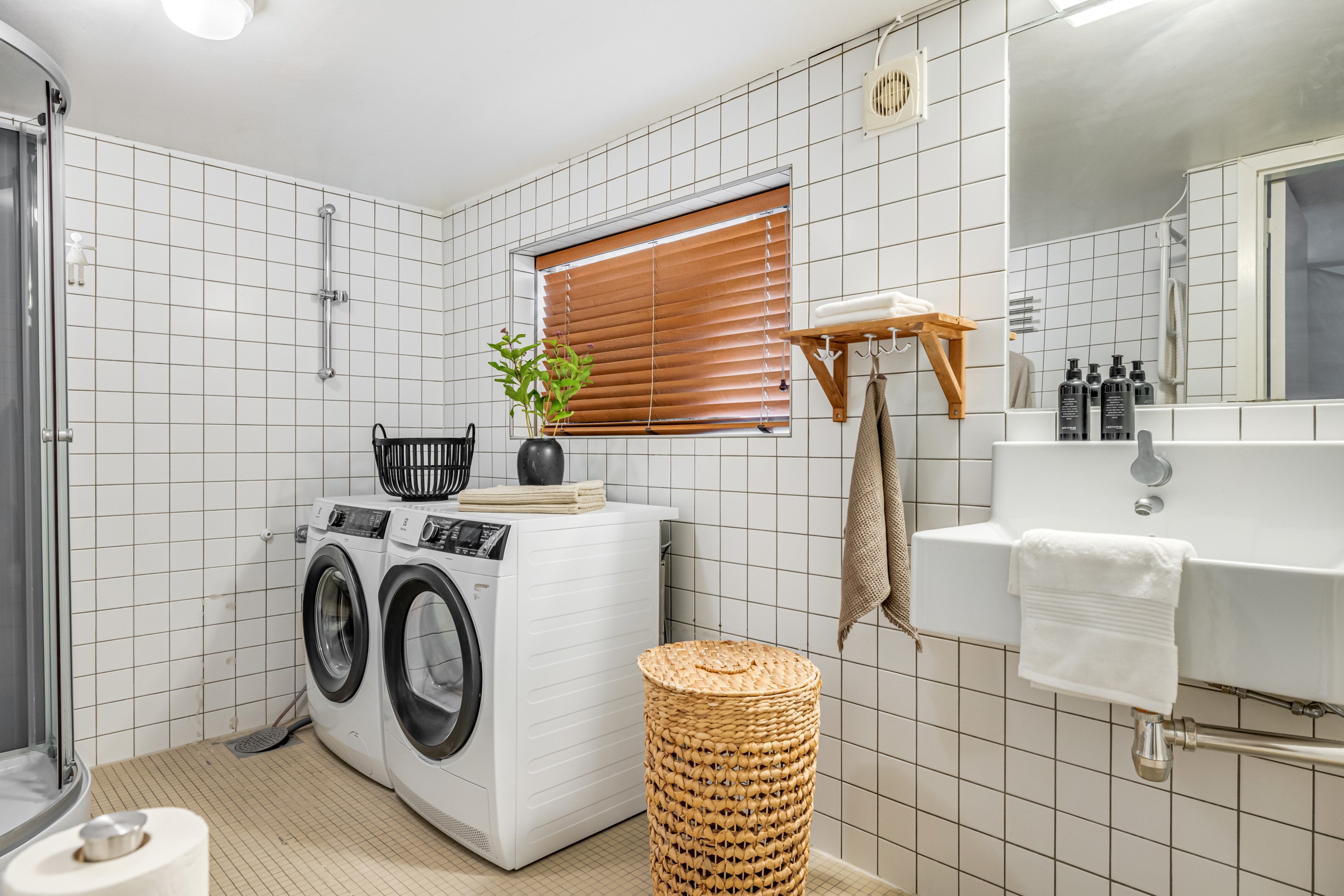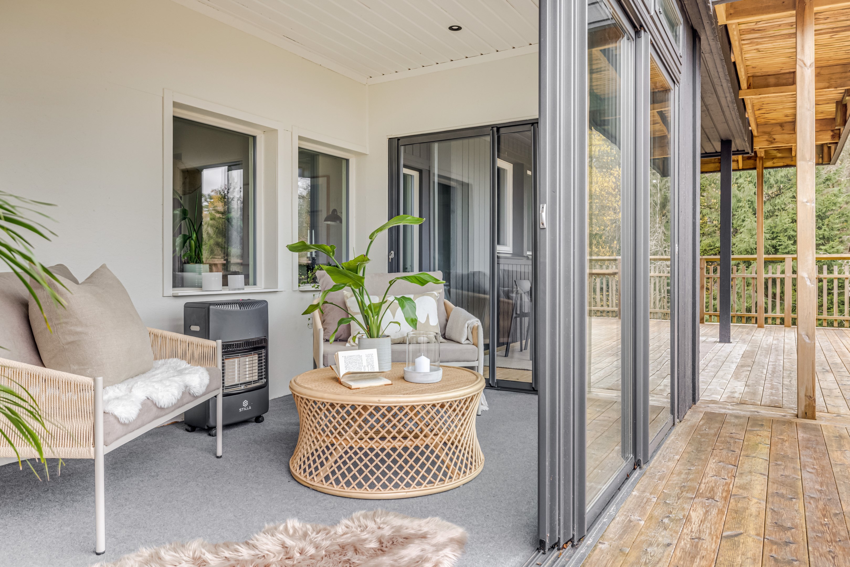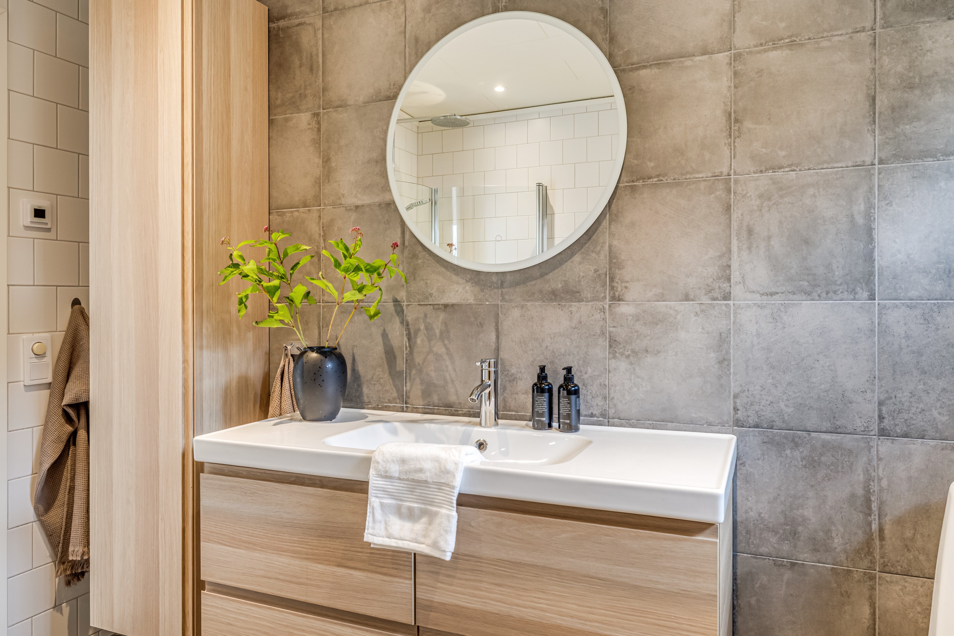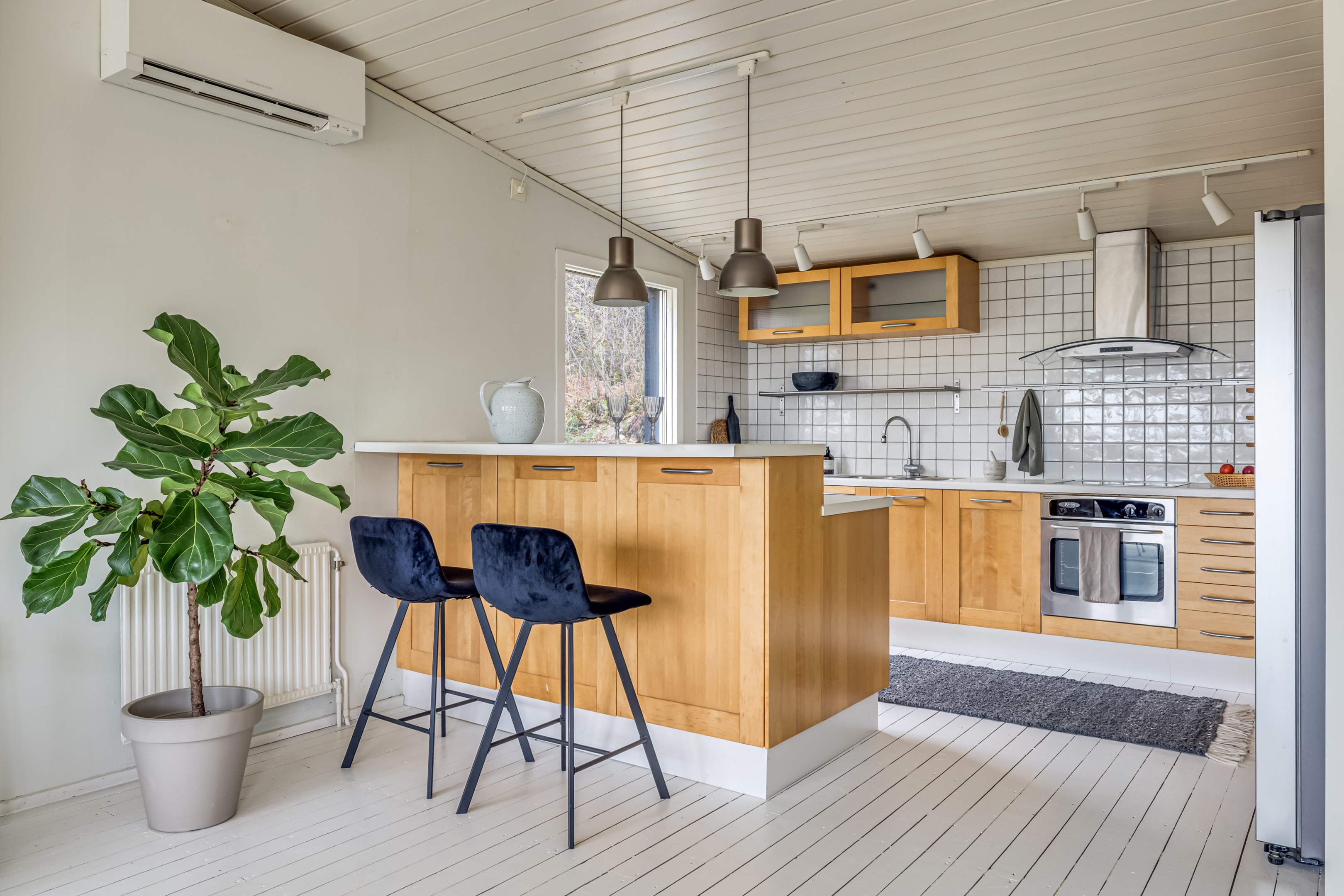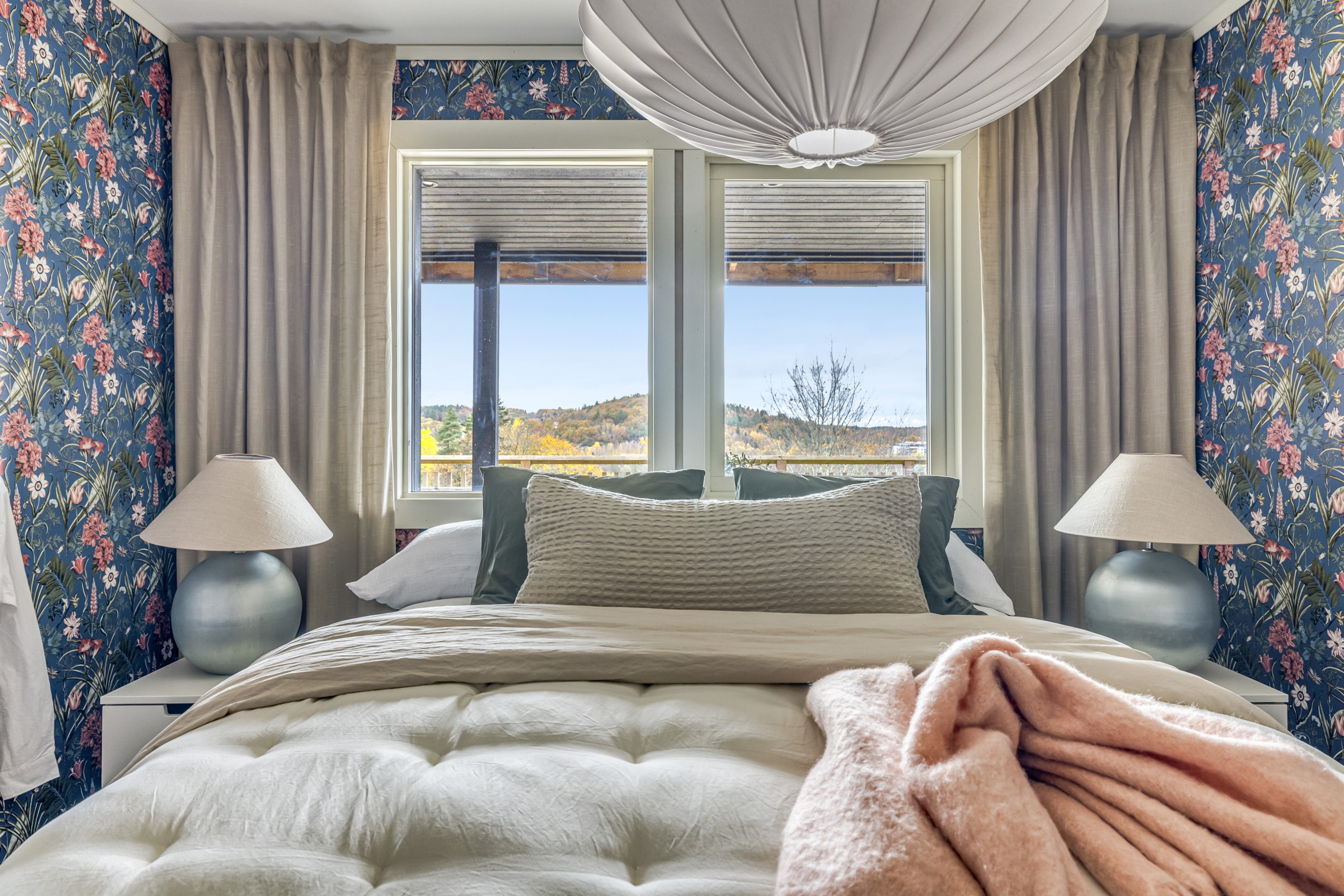 ENTRÉPLAN Via entrén under tak leds du in i denna mäktiga villa. På entréplanet möts du av en hall med yta för att hänga av dig ytterkläder och skor längs med väggen. Betongväggarna är putsade i vitt och på golvet ligger en grå klinker. Längre in i hallen finns god yta för garderober. Från hallen når du den helkaklade ytan som agerat tvättstuga och badrum. Utrymmet är äldre men fullt funktionellt. Här finns duschmöjligheter via duschkabin, wc-stol och handfat samt tvättmaskin och torktumlare från 2021. Utrymmet har vattenburen golvvärme och via ett fönster tittar dagsljuset in. Via dörren intill når du ett grovinrett utrymme, här står innerdelen till husets värmekälla, IVT Optima 800. MELLAN PLAN Från entréplanet har en trappa nyligen installerats som leder dig upp till nästa plan. Här möts du av stora hemtrevliga sällskapsytor, generösa fönsterpartier och ett rejält kök med en social barbänk som delar av ytorna på ett trivsamt sätt. Luftvärmepumpen från 2015 är sparsamt använd då den nyttjats som ett värmekomplement under årets kallare dagar och för AC under årets varmare dagar. På golven ligger det ett vitmålat träplank och väggarna är genomgående målade i vitt. Köket har gott om skåp och mycket bra arbetsytor. Ovan vita bänkskivor i laminat har du stänkskydd i vitt kakel. Vitvarorna fördelar sig om en kombinerad kyl och frys från 2020, äldre spis och ugn, fläktkåpa från 2015 och diskmaskin från 2017. Köksrummets generösa yta ger dig många olika möbleringsalternativ. Här är lätt att duka upp stort till familjära tillställningar. Braskaminen ger både värme och stämningsfaktor. Uterummet ligger smart placerat och är en skön plats för avkoppling och återhämtning. Uterummet som har höst isolerat glas från Willab Garden har det övre planet som tak och tjock frigolit under golvet så med en gasolkamin kan du snabbt värma upp utrymmet även på vintern. I vardagsrumsdelen får du plats med soffgrupp och tillhörande möblemang. En gästtoalett ligger i anslutning till rummet. Från vardagsrummet når du också en liten uteplats under tak åt söder. För dig som önskar större sällskapsytor på detta plan finns möjlighet att öppna upp delar av väggen in mot intilliggande sovrum. Ett par trappsteg upp kommer du till det största sovrummet på detta plan. Här finns bra förvaring bakom skjutdörrar. Väggarna pryds av en mönstrad tapet och på golvet ligger en grå heltäckningsmatta. Vidare in i huset kommer du till trappan som leder dig upp till det övre planet och två rum lämpar sig bra till sovrum, kontor eller liknande. Väggarna är målade i vitt och på golvet ligger en grå heltäckningsmatta. Det innersta sovrummet ligger ett par trappsteg ner. Ett hörnfönster släpper in rikligt med ljus. ÖVRE PLAN Du välkomnas upp till det övre planet som är ett imponerande utrymme med magisk utsikt. Det övre planet fördelar sig om tre generösa sovrum, ett stort badrum och ett njutningsfullt sällskapsrum som har utgång till en balkong som sträcker sig runt 2 sidor om huskroppen. Sällskapsrummet har stora fönsterpartier som skänker ett fint ljusflöde till rummet. Alla sovrummen har plats för garderober och rymmer det mesta möblemanget du önskar. Badrummet har kakel från Interkakel, handfat med kommod, duschhörna med infällbara dörrar och wc-stol. Hela övre plan är helt fribärande och har vattenburen golvvärme i alla rum förutom badrummet som har elgolvvärme för bästa komfort. Fast nätverkskabel är draget till alla rum och den finns även i taket för en Wifi AP. På golven i alla rum ligger en 3 stavsparkett i ask, Stockholm White. Alla väggar är målade i vitt.