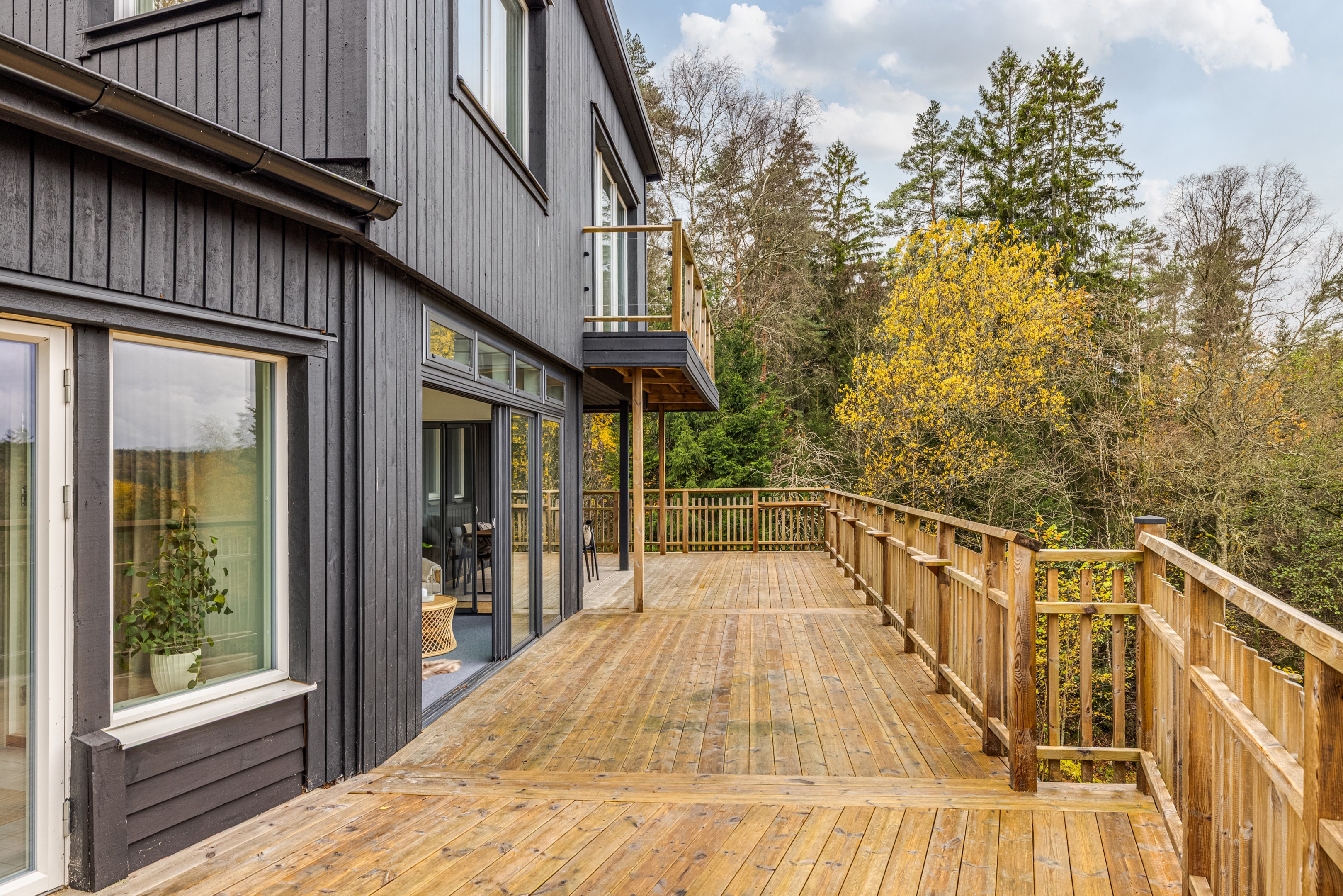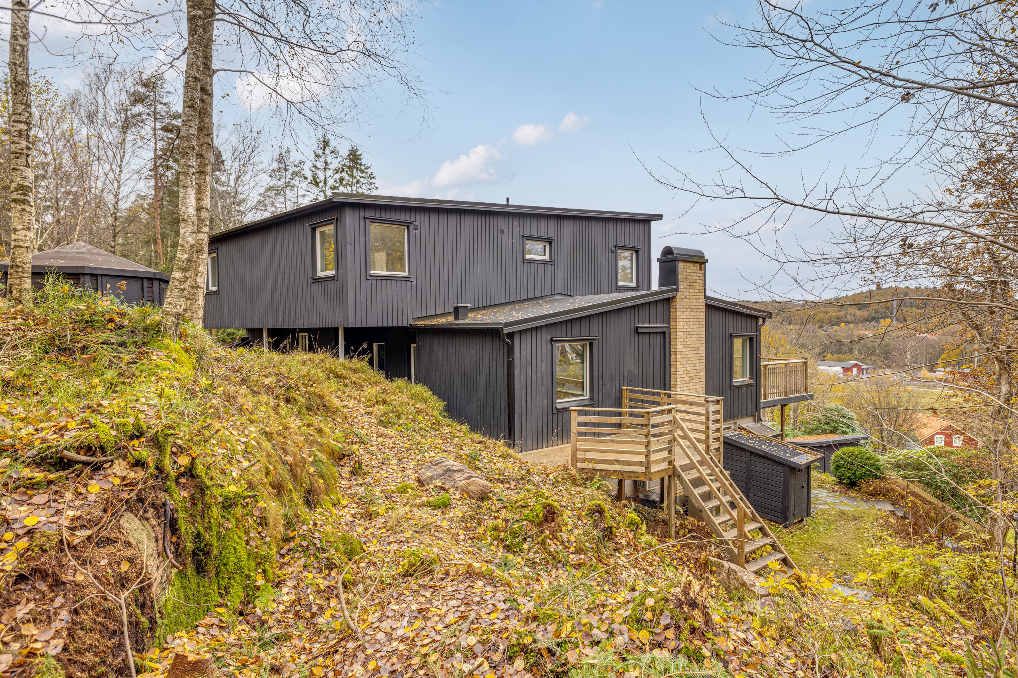 VÄLKOMMEN TILL EN SPÄNNANDE FASTIGHET MED FLERTALET RENOVERINGAR UTFÖRDA UNDER 2025!! HÖGT UTSIKTSLÄGE, STORA RUMSVOLYMER OCH MAGISKA UTEPLATSER Här erbjuds du ett originellt och sobert hus, där samspelet mellan materialen och naturen har stått i fokus. I en skogsbacke i den södra delen av Landvetter, ligger detta magnifika hus med sitt alldeles egna formspråk. Arkitektritad tillbyggnad under 2021 med ett helt fribärande övre plan med penthousekänsla. I samband med det fick huset ny fasad, ny takpapp och delvis nya fönster. Huset får en särskild relation till naturen där du direkt kan följa årstidernas växlingar genom dess stora panoramafönster. Huset har varsamt renoverats genom åren och moderna bekvämligheter har integrerats med omsorg. Villan om 210 kvm bjuder på hela sju rum och erbjuder gott om plats för den stora familjen att växa, umgås och trivas. Husets planlösning är flexibel, med sociala ytor som binder ihop vardagen på ett naturligt sätt. Köket har generösa arbetsytor och delvis öppen planlösning ut mot matplats och vardagsrum – perfekt för middagar, läxläsning och spontana samtal. Den stämningsfulla braskaminen blir snabbt en favorit under årets kallare månader. Från köket når du det rymliga uterummet, som fungerar som en förlängning av de sociala ytorna. Här kan du njuta av ljuset och grönskan från tidig vår till sen höst. På detta plan finns två sovrum och ett kontor. Utöver detta finns ett läckert övre plan med en rejäl sällskapsyta, magiskt utsikt och utgång till en balkong. Från vardagsrummet når du 3 väl tilltagna sovrum och ett stort badrum. Ytorna ger goda möjligheter till såväl avskildhet som hemmakontor, gästrum eller hobbyrum. Två helkaklade badrum samt ett separat wc gör vardagen smidig även för den större familjen. Generösa uteplatser med enastående utsikt i en lugn och avkopplande miljö. Det största trädäcket har ytor över det vanliga vilket ger plats för många olika rumsindelningar och sittgrupper. Sommartid blir detta den naturliga platsen att umgås på med vänner och familj. I ena hörnet är det förberett för ett spabad. Från den övre uteplatsen ges du sommartid möjlighet att fånga den absolut sista kvällssolen bland trädkronorna som omger uteplatsen. Allt beläget på en stor, sluttande tomt med berg i dagen och mindre gräsytor som gränsar till skogsdunge och en kullerstensmur. På tomten finns en äldre carport, gäststuga och förråd med altan, lusthus samt redskapsbod med ett käpphäststall intill. Här bor du med en kort promenad ner till Landvetter båtförening och badplats med sandstrand och bryggor samt tennishall. Här har en sport och fritidsanläggning uppförts med äventyrsgolf, paddel, tennis, pickleball och glasskafé. Vackra promenadstråk finns längs Mölndalsån. Nära till Landvetters centrum som har mataffärer, Stenugnsbageri, små mysiga butiker, restauranger, bibliotek, vårdcentral och resecentrum med utmärkta busskommunikationer via X6. Skolor och förskolor har du på bekvämt avstånd. Landvetter Fotboll och Innebandyklubb har sina egna toppmoderna anläggningar uppe i Önneröd och Härryda Hockey huserar i ishallen som ligger i centrala Landvetter. Några minuts bilfärd till Chalmers golfbana och Landvetter flygplats. Med bil når du centrala Göteborg på ca 15 minuter.