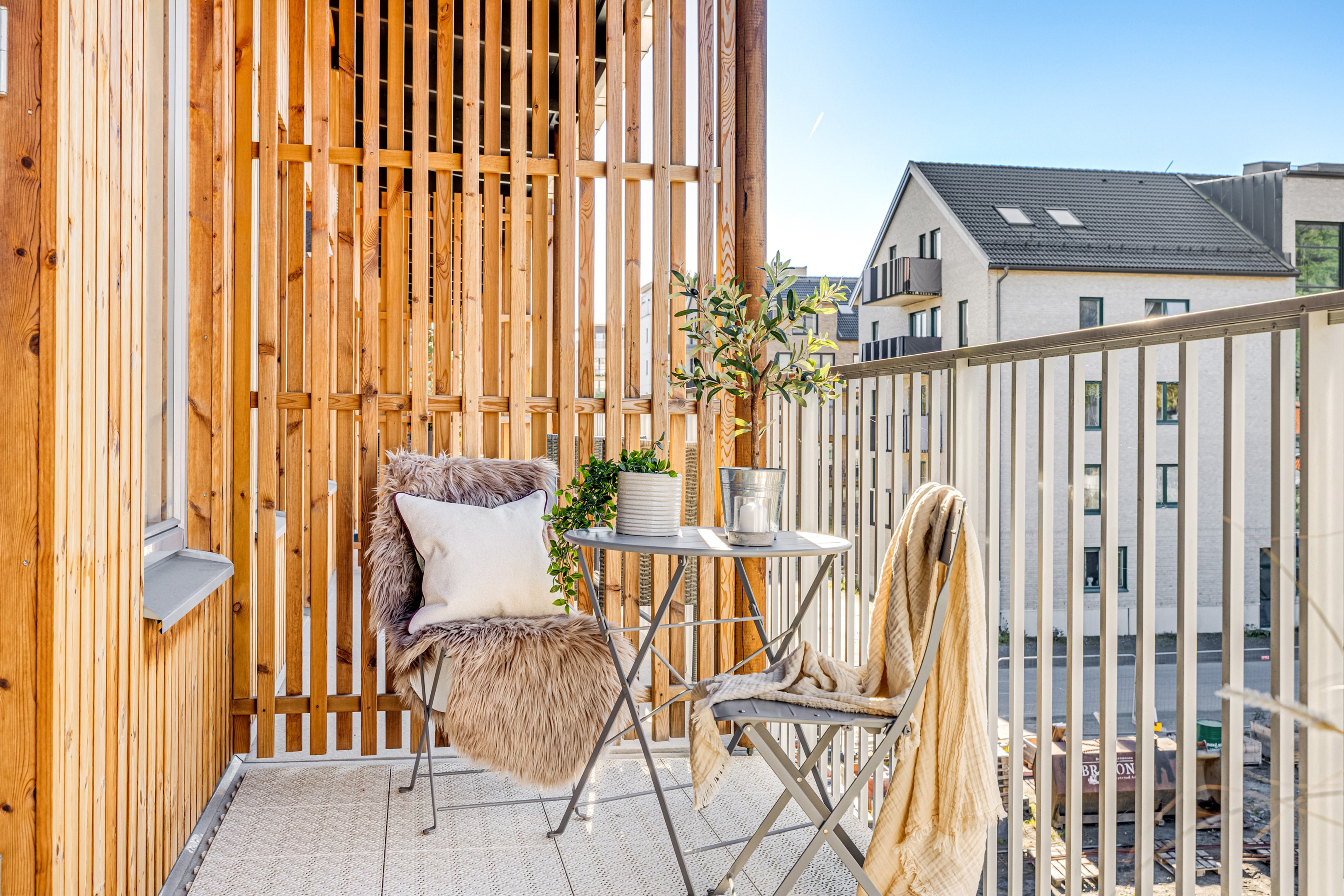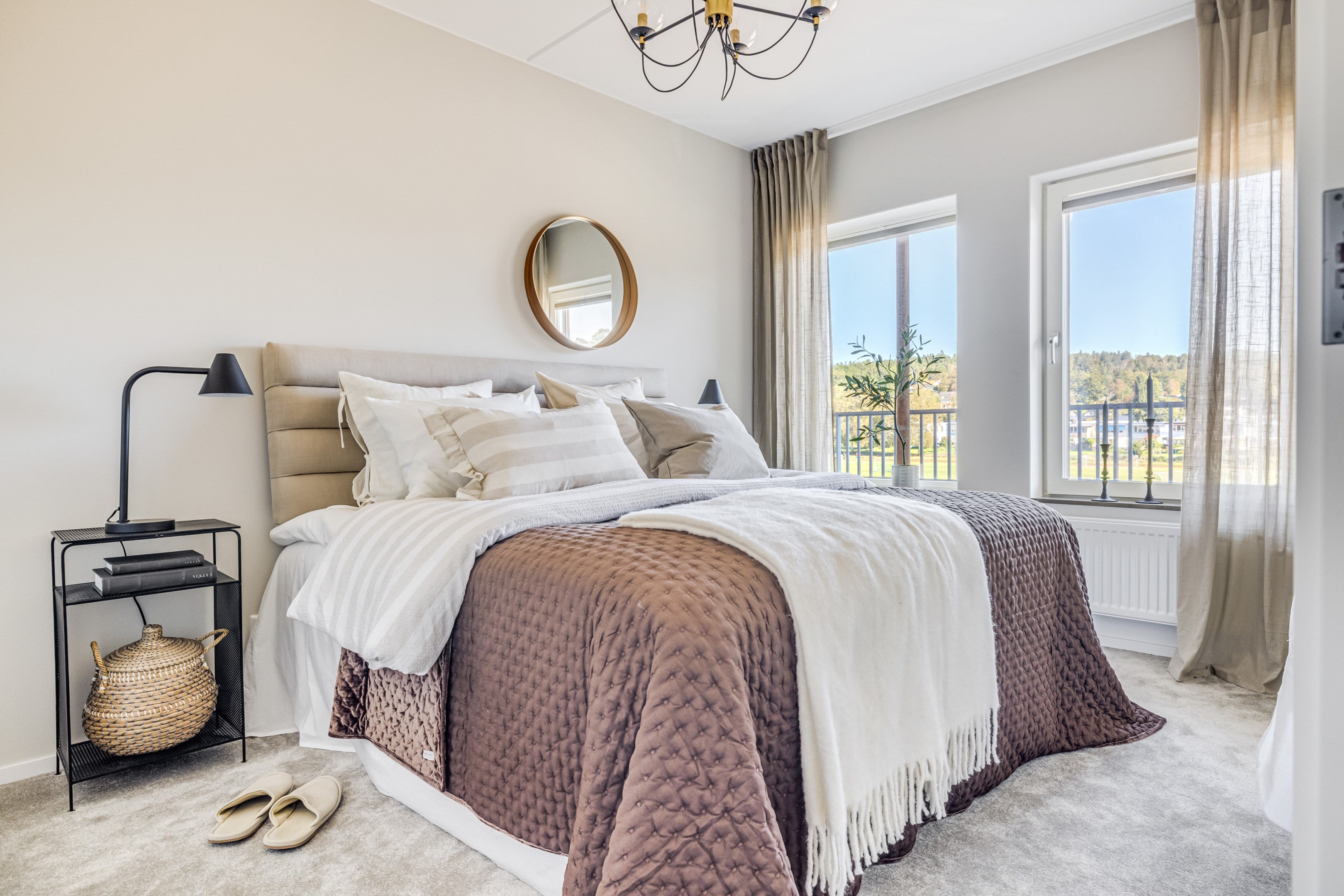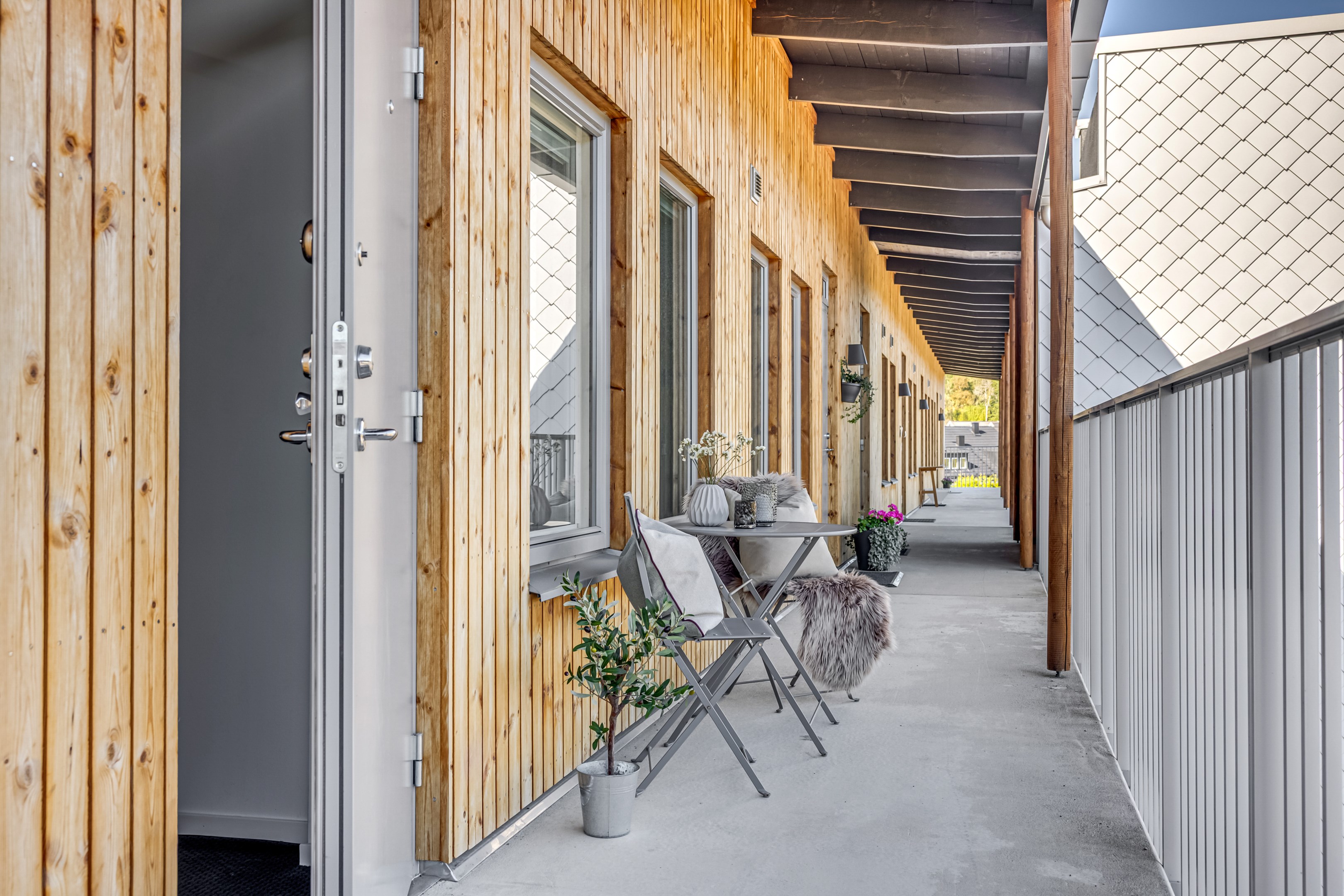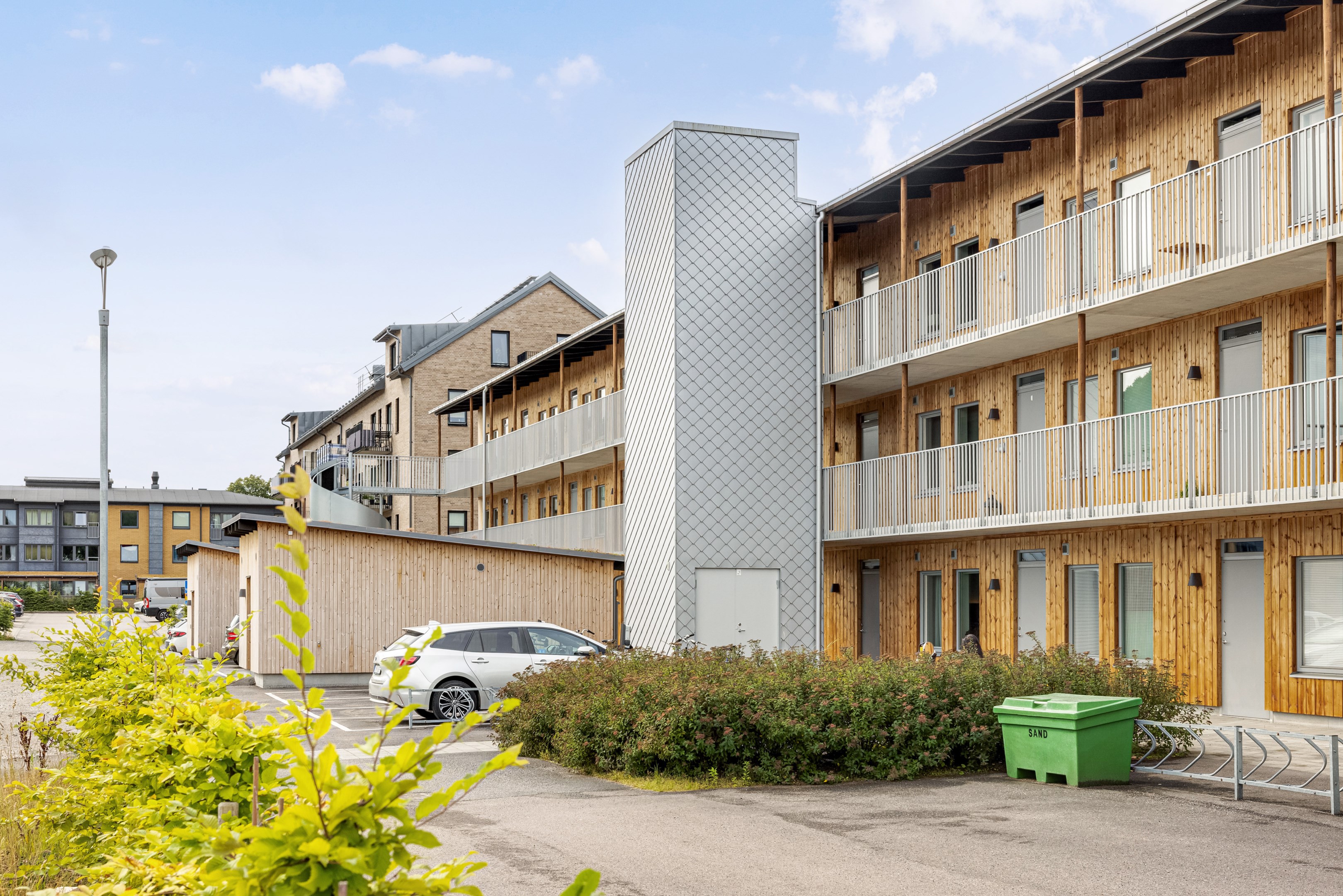 Via entré som ligger praktiskt under tak välkomnas du in i denna hemtrevliga bostad med genomgående planlösning. Interiört präglas bostaden av ett modernt formspråk med generös standard. Ljusa trägolv i ek och fönsterbrädor i kalksten samt kök från Marbodal, Tidaholm. Väggar, tak och innerdörrar går i vitt vilket skapar mycket ljus och rymd. Stor vikt har lagts på att utnyttja varje kvadratmeter på bästa sätt för att du ska få plats med allt som du behöver. Lägenheten har generösa ljusinsläpp med fri utsikt. Köket är skräddarsydd med målade luckor och matchande bänkskivor med tåliga arbetsytor. Stänkskydd i grått kakel. Underlimmad diskho i rostfritt. Bänkbelysning under väggskåp. Bostaden har rostfria vitvaror så som integrerad diskmaskin, induktionshäll, ugn, mikro och kolfilterfläkt. Här ges du gott om plats för att laga mat till både dig själv och dina gäster. Sällskapsytorna rymmer både soffa och matgrupp utan att det känns trångt. De smart planerade ytorna ger plats för att duka upp stort vid festligare tillfällen. Sommartid blir balkongen en mysig plats att umgås på. Ytan är generös och ger plats för två mindre utegrupper. Här erbjuds du möjlighet till rikligt med soltimmar. När den utanförliggande parken är klar blir vyn grönskande och fin. Badrummet är funktionellt och praktiskt med mörk grå klinker på golvet och vitt kakel på väggarna. Kommod, handfat, spegel, handdukstork och duschväggar i klarglas kommer från Svedbergs. Här finns elgolvvärme för bästa komfort. Ovan tvättmaskin och torktumlare finns bra arbetsytor på en bänkskiva i laminat och förvarning i vägghängda skåp. I hallen har du plats för att hänga av dig ytterkläder och skor. Gott om förvaringsutrymme finns i flertalet garderober och bakom skjutdörrar i vitt. Här finns även ett städskåp. Ett rogivande sovrum med plats för tillhörande möblemang når du från hallen. Här finns goda möjligheter till förvaring i två garderober. För dig som önskar mer förvaring finns det många olika smarta lösningar på att bygga upp en säng med byråar eller utdragbara halvgarderober under.