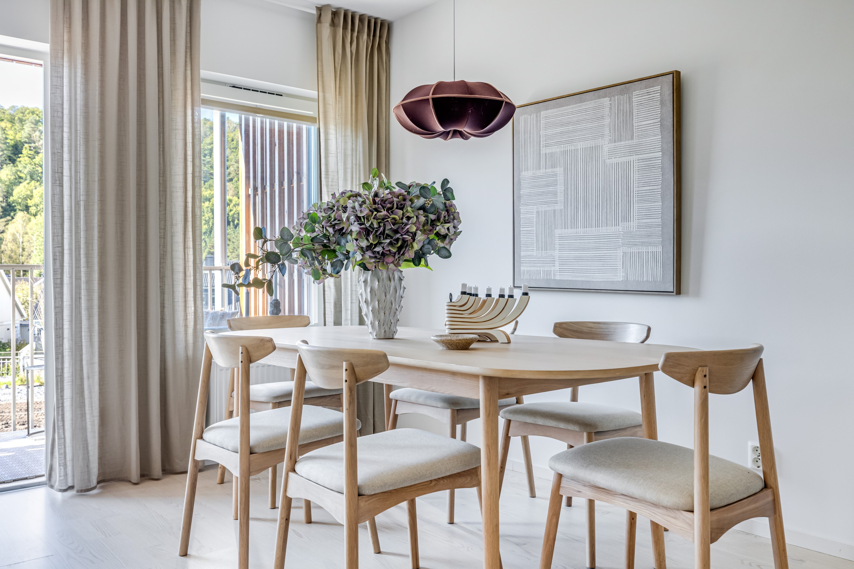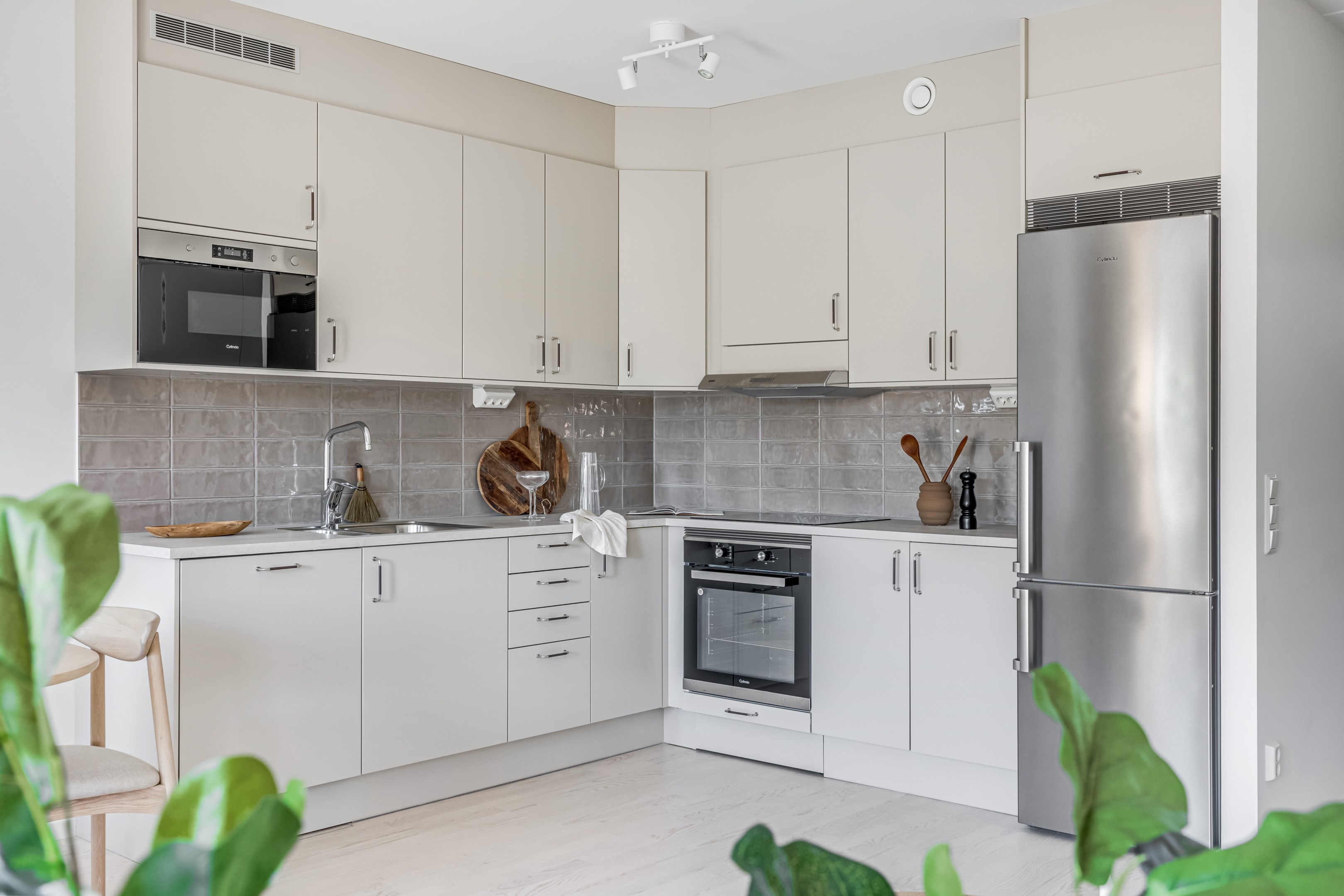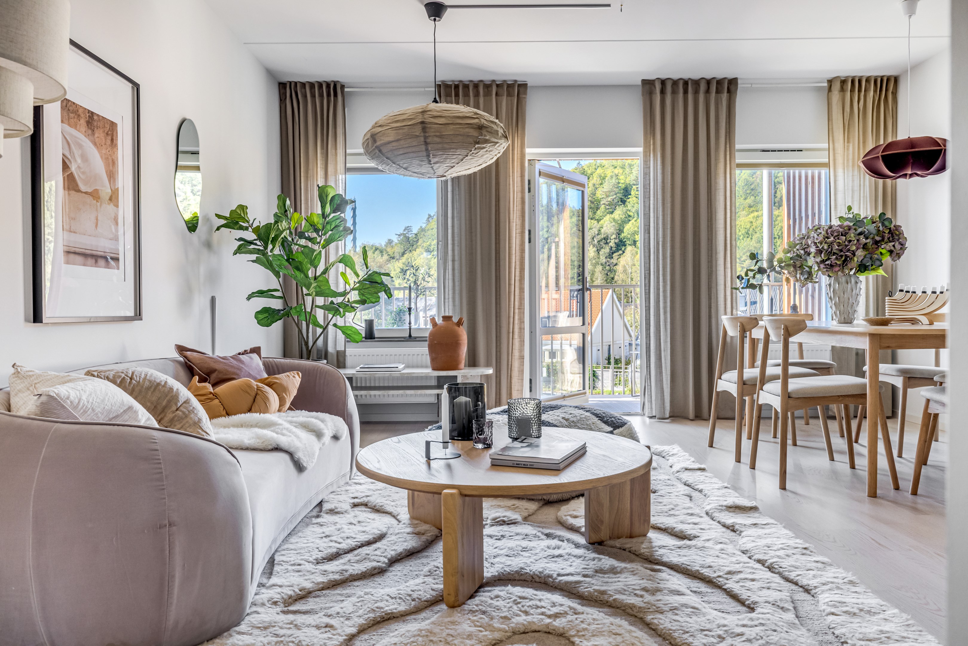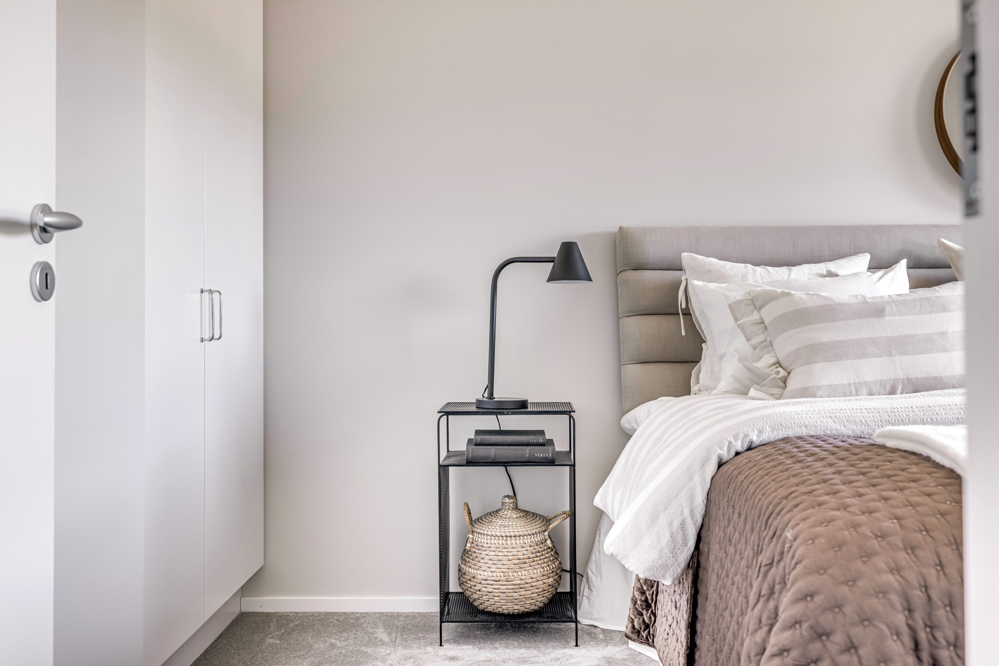 Via entré som ligger praktiskt under tak välkomnas du in i denna hemtrevliga bostad med genomgående planlösning. Interiört präglas bostaden av ett modernt formspråk med generös standard. Ljusa trägolv i ek och fönsterbrädor i kalksten samt kök från Marbodal, Tidaholm. Väggar, tak och innerdörrar går i vitt vilket skapar mycket ljus och rymd. Stor vikt har lagts på att utnyttja varje kvadratmeter på bästa sätt för att du ska få plats med allt som du behöver. Lägenheten har generösa ljusinsläpp med fri utsikt. Köket är skräddarsydd med målade luckor och matchande bänkskivor med tåliga arbetsytor. Stänkskydd i grått kakel. Underlimmad diskho i rostfritt. Bänkbelysning under väggskåp. Bostaden har rostfria vitvaror så som integrerad diskmaskin, induktionshäll, ugn, mikro och kolfilterfläkt. Här ges du gott om plats för att laga mat till både dig själv och dina gäster. Sällskapsytorna rymmer både soffa och matgrupp utan att det känns trångt. De smart planerade ytorna ger plats för att duka upp stort vid festligare tillfällen. Sommartid blir balkongen en mysig plats att umgås på. Ytan är generös och ger plats för två mindre utegrupper. Här erbjuds du möjlighet till rikligt med soltimmar. När den utanförliggande parken är klar blir vyn grönskande och fin. Badrummet är funktionellt och praktiskt med mörk grå klinker på golvet och vitt kakel på väggarna. Kommod, handfat, spegel, handdukstork och duschväggar i klarglas kommer från Svedbergs. Här finns elgolvvärme för bästa komfort. Ovan tvättmaskin och torktumlare finns bra arbetsytor på en bänkskiva i laminat och förvarning i vägghängda skåp. I hallen har du plats för att hänga av dig ytterkläder och skor. Gott om förvaringsutrymme finns i flertalet garderober och bakom skjutdörrar i vitt. Här finns även ett städskåp. Ett rogivande sovrum med plats för tillhörande möblemang når du från hallen. Här finns goda möjligheter till förvaring i två garderober. För dig som önskar mer förvaring finns det många olika smarta lösningar på att bygga upp en säng med byråar eller utdragbara halvgarderober under.