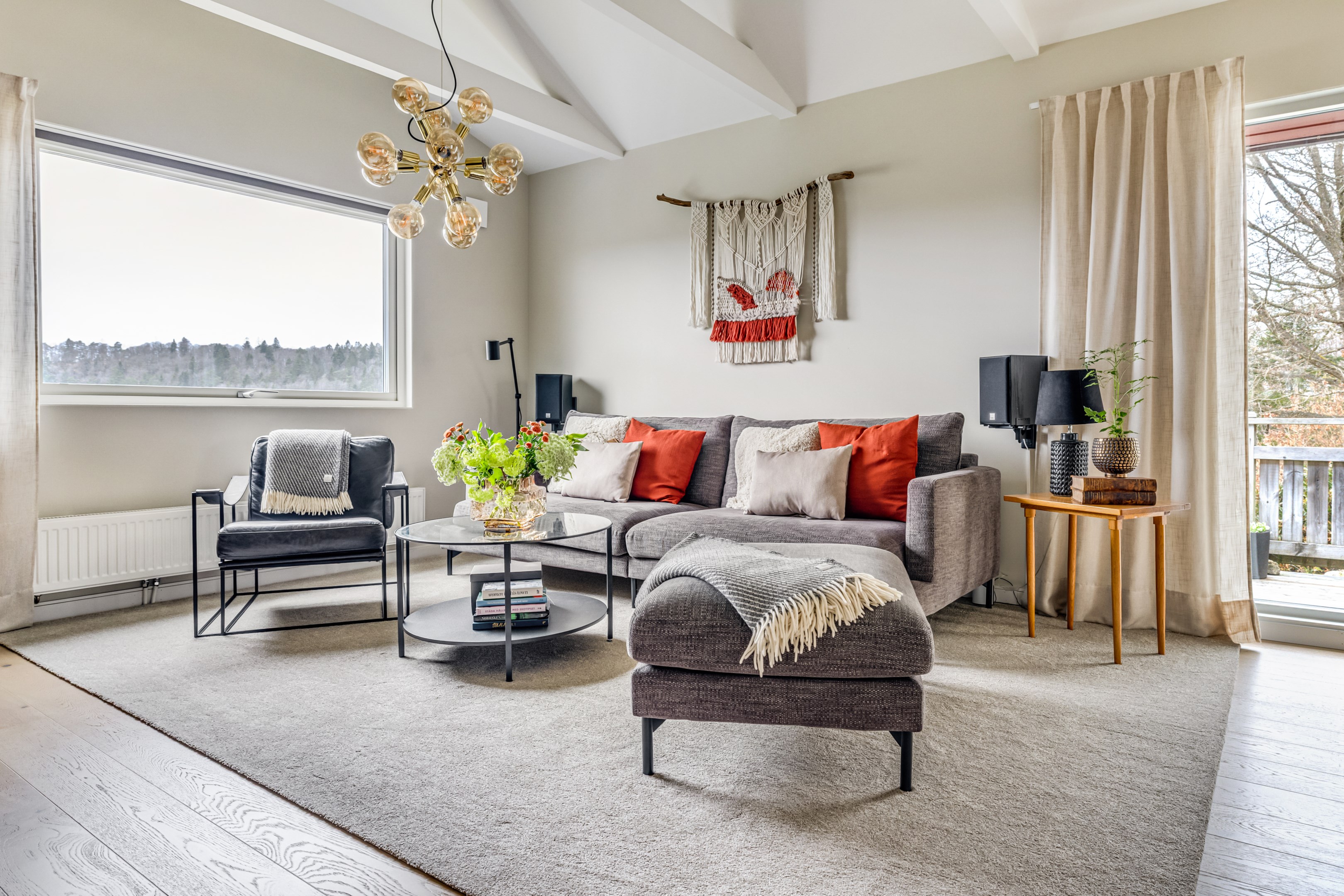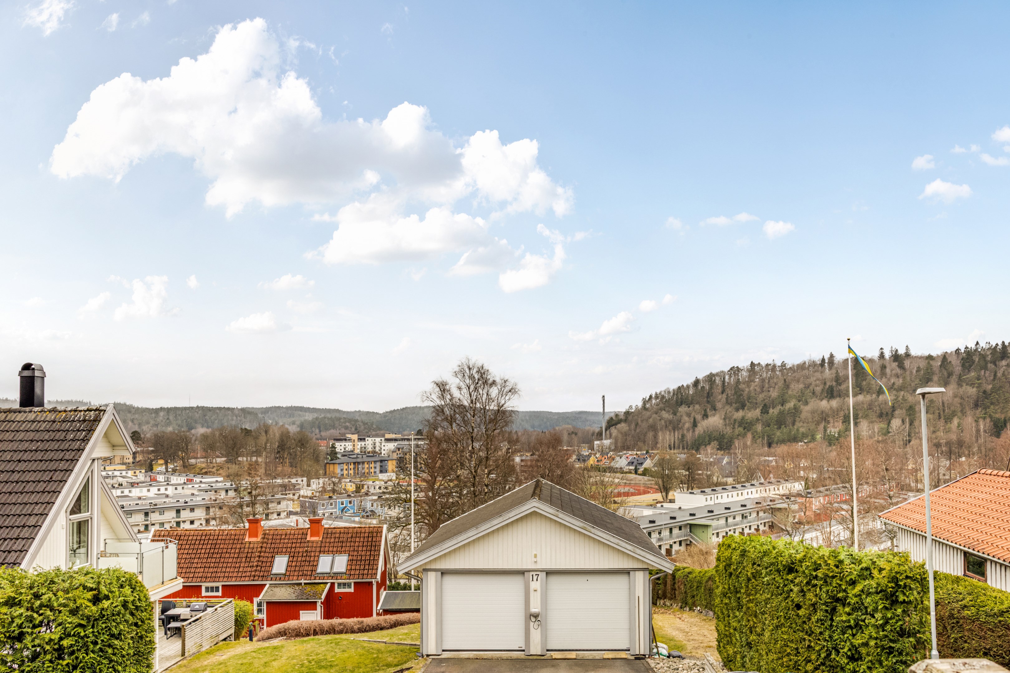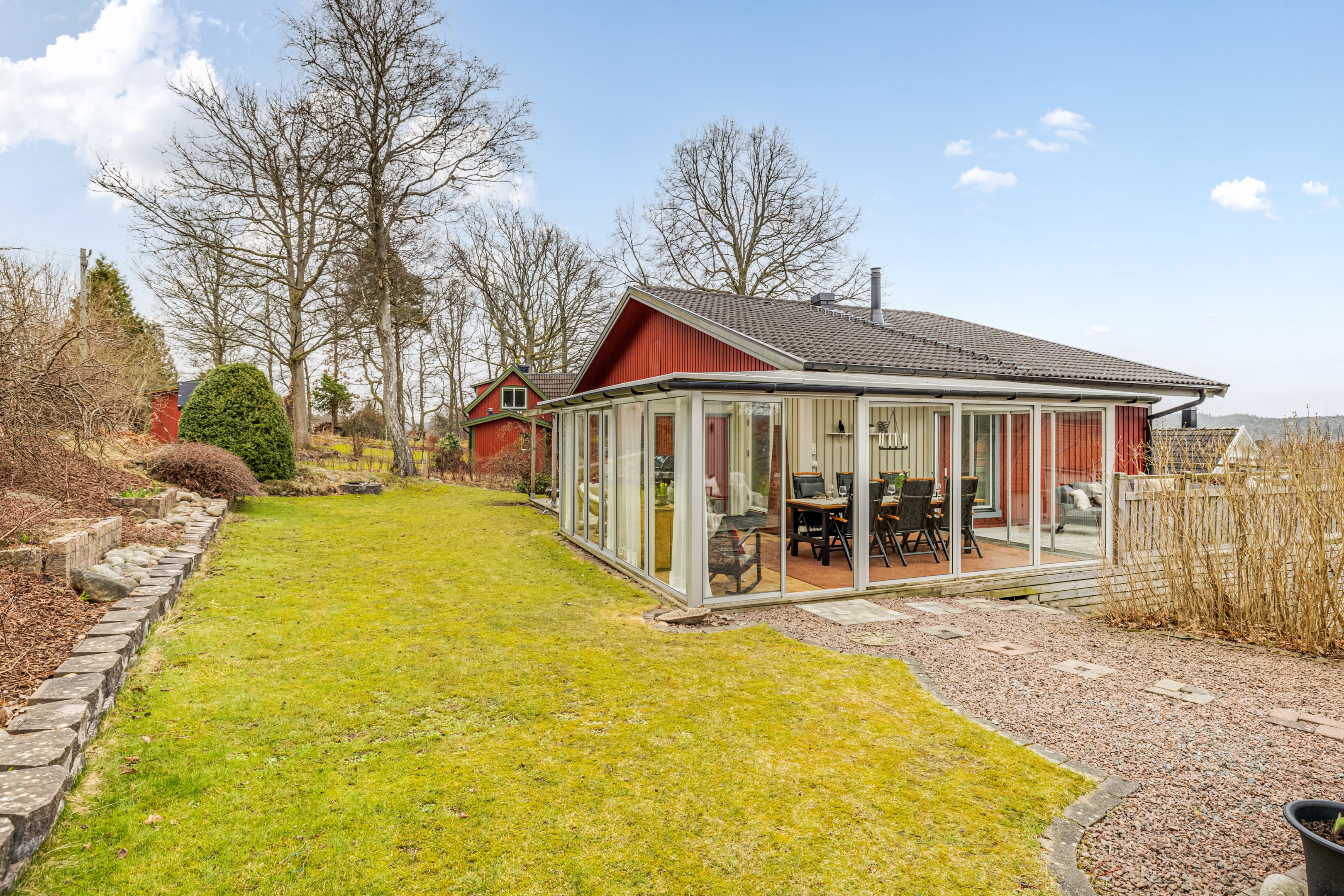 HÖGT OCH FRITT UTSIKTSLÄGE MED EN TOTALYTA OM 180 KVM, BERGVÄRME, UTERUM, SOLIG UTEMILJÖ OCH ETT LÄCKERT VARDAGSRUM MED KAMIN Mitt i centrala och expansiva Landvetter ligger denna gedigna och välskötta sluttningsvilla från Eksjöhus som är uppförd 1982. Här erbjuds du ett ett bekvämt och trivsamt boende på en lugn och lummig återvändsgata. Villan som är mycket energisnål har en ny bergvärmepump och många stora, tunga renoveringar är utförda genom åren. Här kan du njuta av ett platsbyggt kök i trendig design med vidsträckt utsikt och utgång till balkong, ett elegant badrum med dubbeldusch och ägarna har skapat ett fantastiskt vardagsrum som har tak öppet till nock med synliga balkar och rikligt med fönster som ger ett otroligt ljusinsläpp. Planlösningen är väldigt flexibel med många rum att nyttja efter dina egna behov och generöst med förvaringsutrymmen finns. I den grönskande trädgården råder en underbar utemiljö. Mysiga uteplatser i olika väderstreck ger dig solmöjligheter från morgon till kväll. Här kan du njuta av lugnet på den lummiga uteplatsen och solfantastens givna plats är på utsiktsaltanen där solmöjligheter finns under hela dagen. Ett rogivande uterum finns för avkoppling och socialt umgänge och den vedeldade badtunnan ligger precis intill. Friggeboden har en platsbyggd arbetsbänk för plantering och bra förvaring för trädgårdsgrejer. I den mindre garagedelen har du bra förvaringsytor och elbilsladdare finns intill. Här bor du med närhet till allt du kan tänkas behöva såsom busshållplats, skola, förskola och centrum med affärer, restauranger, apotek och mysiga butiker. En kort promenad från huset når du Landehofs elljusspår med konstsnö på vintern och utomhusgym samt Gallhålans naturreservat med mäktiga naturupplevelser och fina strövområden. Vid Landvettersjön finns badplats som har både sandstrand och bryggor. Här har en sport- och fritidsanläggning uppförts med äventyrsgolf, paddel, tennis, pickleball och glasskafé. Landvetter Fotboll har sin egna toppmoderna anläggning i Önneröd och i Pinntorpshallen intill finns en innebandyklubb. Landvetter Ryttarsällskap har sin nya anläggning längs Tahultsvägen. Några minuters bilfärd till Chalmers Golfklubb och Landvetter flygplats.