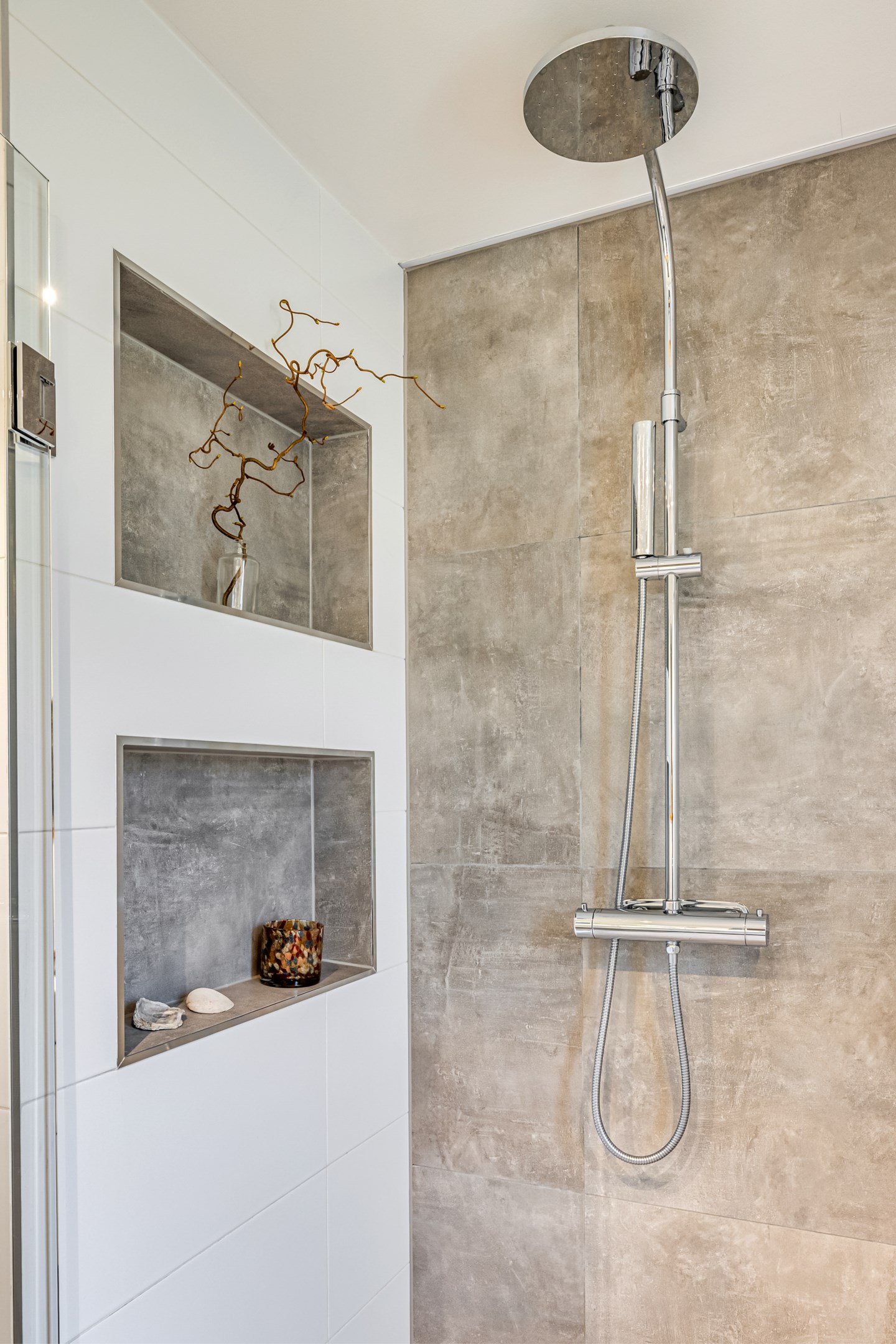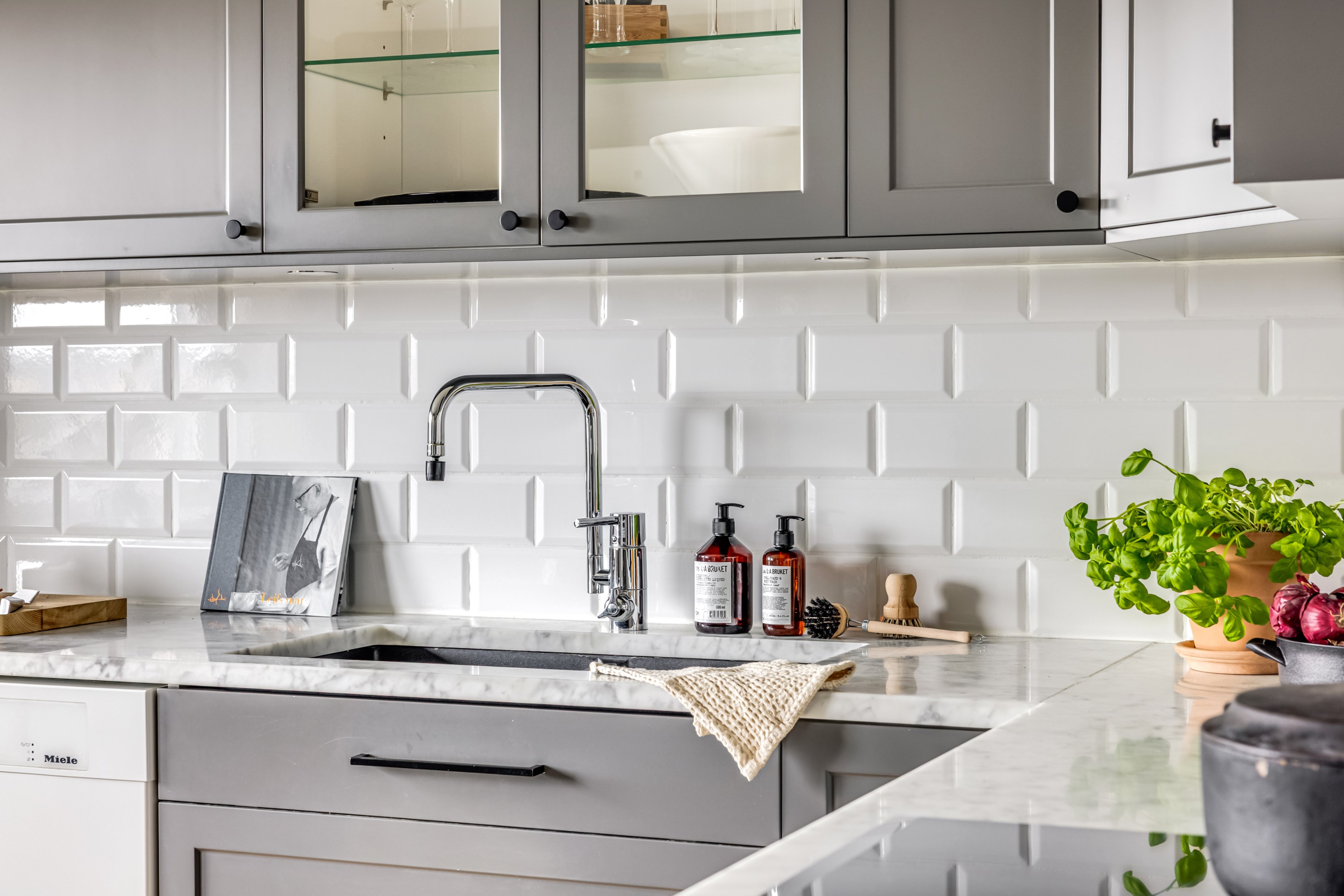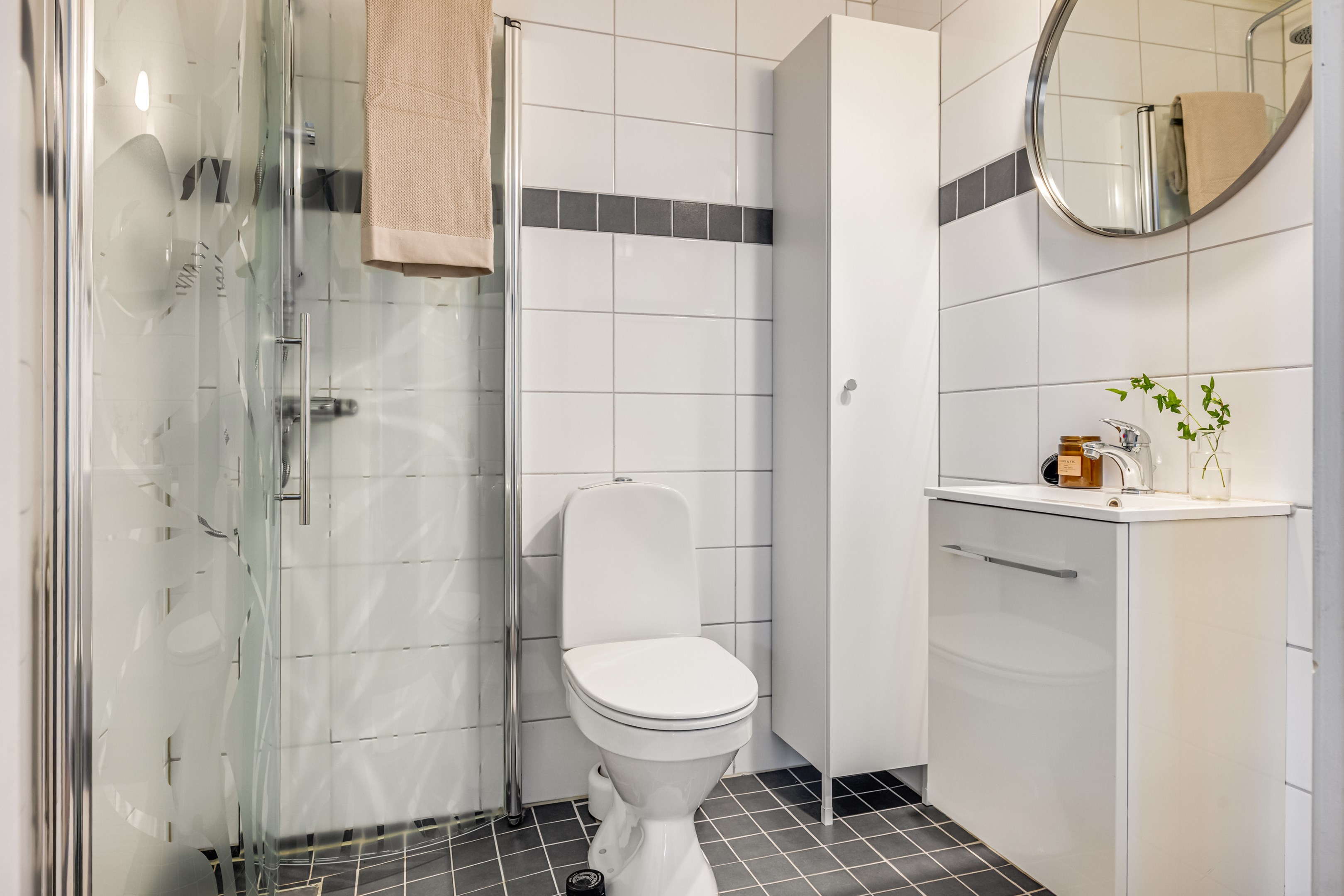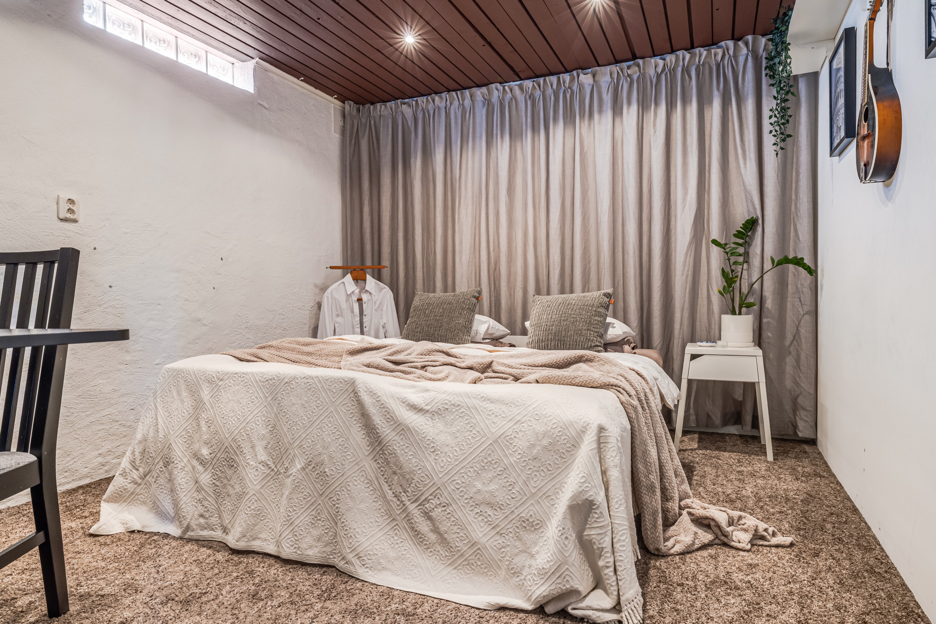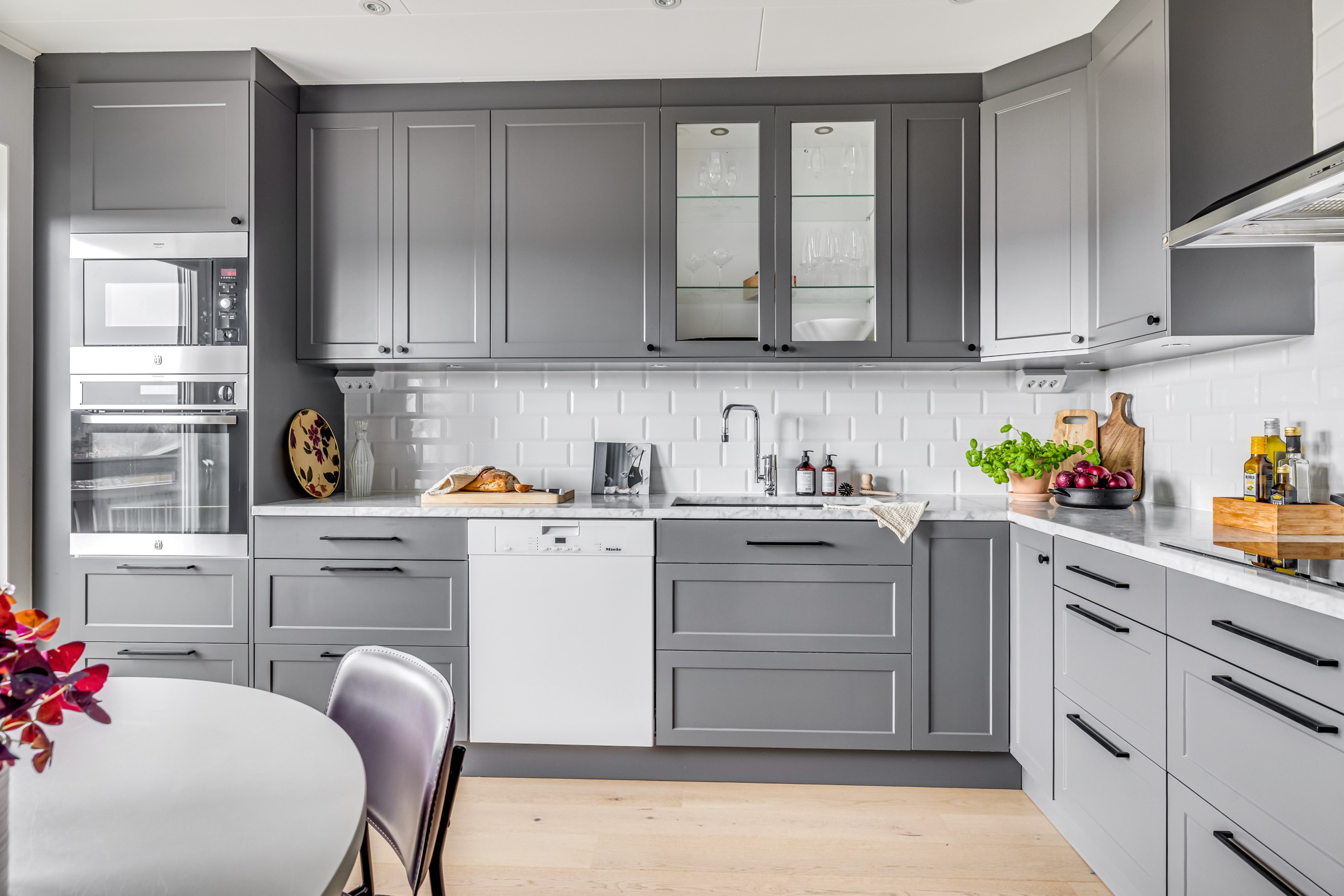 ENTRÉPLAN Praktiskt med entré under tak. När du kliver in via farstun möts du av en rymlig och välkomnande hall. Entrédörren har Yale Doorman lås och på vardera sida om dörren sitter ett högsmalt fönster som släpper in ljus. Rikligt med förvaring finns i en generös garderobslösning med skjutdörrar. Möjlighet finns att sätta in en dörr ut mot garagedelen. Gott om plats för ytterkläder och skor finns längs med ena väggen. Den väggen är målad i en ljusgrå nyans och övriga väggar är målade i vitt. Från hallen fortsätter parkettgolvet i ek vidare in i sovrum och klädkammare. Sovrummet är väl tilltaget och har en klädkammare. Ett rogivande rum som vetter mot den lugna återvändsgatan. Plats finns för garderober och byråar. Väggarna är målade i en mörk, grön nyans Jotun Balans. I klädkammaren finns mycket bra förvaring och en garderob. Här är väggarna målade i vitt. Vidare in i hallen ligger ett flexibelt allrum som av ägarna används som kombinerat gästrum, kontor och musikstudio. Rummet kan likväl användas som ett mysigt sällskapsrum, gym och som en lyxigt stor förvaringsyta. På det isolerade betonggolvet ligger en heltäckningsmatta. Väggarna är målade i vitt och utanpåliggandes spotlights i taket lyser upp med ett stämningsfullt sken. Denna ytan var tidigare en del av garaget och ett förråd. Önskar du större garage kan du ta bort väggen ut mot garagedelen igen. I anslutning till hallen ligger ett helkaklat duschrum. Väggarna pryds av ett vitt kakel och på golvet ligger en mörk klinker. Här finns handfat med kommod, spegel och wc. Under 2021 sattes ett högskåp in och duschväggarna byttes ut mot nya. Vägg i vägg har du en rymlig tvättstuga med tätskikt i original utförande. Här finns mycket bra arbetsytor och gott om plats för ytterligare klädvård. Ovan tvättmaskin från 2019 och torktumlare från 2022 finns en bänkskiva i laminat. Under 2021 målades golvet om, garderober sattes in, bänkskivan byttes ut och nya skåp sattes upp. Väggarna är målade i vitt och betonggolvet är målat i en grå nyans. Innanför tvättstugan ligger pannrummet och här står husets bergvärmeanläggning. Här finns smarta förvaringslösningar och gott om plats för att förvara ytterkläder och skor. ÖVRE PLAN På det övre planet möts du direkt av det fina ljusinsläppet och det trendiga köket. De genomtänkta fönsterplaceringarna på detta plan ger dig direkt ovanför trappan ett unikt ljusflöde från fyra väderstreck. På alla golv ligger en enstavs parkett i ek, Tarkett Prestige, som är laserad i en ljusare nyans. I hallen och köket är väggarna målade i en behaglig grå nyans, Jotun Morgondis. Från hallen når du via en helglasad balkongdörr uteplatser och trädgård. Köket som är signerat Woodrich är en svensk kökstillverkare som specialiserar sig på måttanpassade kökslösningar och utbytesluckor med fokus på att kombinera personlig design med hantverksmässig kvalitet. Köket har skåp i fullhöjd och luckor i en snygg antracitgrå nyans. Här finns generöst med förvaring. Ett belyst vitrinskåp blir en trevlig detalj. Vitvarorna består av induktionshäll, fläktkåpa i rostfritt, varmluftsugn och mikro från 2016. Kyl och frys är från 2015 och diskmaskin från 2014. En extra front i samma färg som köket finns om man vill sätta in en integrerad diskmaskin. Vid kyl och frys finns en smart placerad avställningsbänk. Här finns även en vinkyl. Ovanför påkostade bänkskivor i vit Carraramarmor sitter ett vitt fasat kakel i halvförband som vid fläkten går hela vägen upp till taket. Infällda spotlights i taket lyser upp med ett fint sken. Matplatsen fullkomligt badar i ljus. Från köket har du fantastiskt utsikt och via en helglasad balkongdörr når du den soldränkta balkongen. En flexibel sällskapsyta finns i anslutning till kök och hall. Har i dagsläget används som kontor men lämpar sig lika väl till ett litet tv-rum till barnen. Väggarna är målade i en en dov röd nyans, Jotun Sophisticated Red. På vardera sida om rummet ligger två sovrum. Det största rummet har en generös garderobslösning bakom ett draperi längs med hela ena väggen. Väggarna är målade i vitt. Det andra rummet ligger i vinkel och rymmer det mesta som behövs såsom säng, skrivbord och byrå. Detta rummet har en målad fond och övriga väggar är målade i vitt. Det eleganta badrummet erbjuder en harmonisk kombination av stil och komfort där varje detalj är noggrant genomtänkt. Här möts du av en påkostad interiör med rena linjer och materialval av högsta kvalitet som skapar en tidlös och lyxig känsla. Bakom stora glasdörrar väntar generösa dubbelduschar. De infällda nischerna ger praktisk förvaring. Den rejäla kommoden med dubbla handfat erbjuder gott om utrymme och bekvämlighet. Ovanför löper en stor spegel längs väggen som förstärker rymden och reflekterar ljuset på ett vackert sätt. Ett fönster släpper in naturligt dagsljus medan infällda spotlights i taket ger en behaglig och stämningsfull belysning under dygnets alla timmar. Den behagliga elgolvvärmen gör varje steg varmt och komfortabelt. Både vägghängd toalett och komod gör det enkelt att städa. Vidare in i huset öppnar sig vardagsrummet som med sina synliga balkar och generösa takhöjd ger en härlig rymd. Rummet som är både luftigt och ljust har stora fönsterpartier som släpper in rikligt med naturligt ljus och skapar en öppen och välkomnande känsla. Rummets generösa ytor erbjuder dig goda möjligheter att skapa en trivsam och funktionell möblering. Kaminen ger hög mysfaktor och skönt värmetillskott under kallare dagar. Väggarna är målade i en greige nyans, Jotun Kalk. Rummet kan delas av till ett extra sovrum om behovet finns. En balkongdörr leder dig ut till uterummet utanför som blir som ett extra vardagsrum. Den perfekta platsen för avkoppling, gemenskap och underhållning u